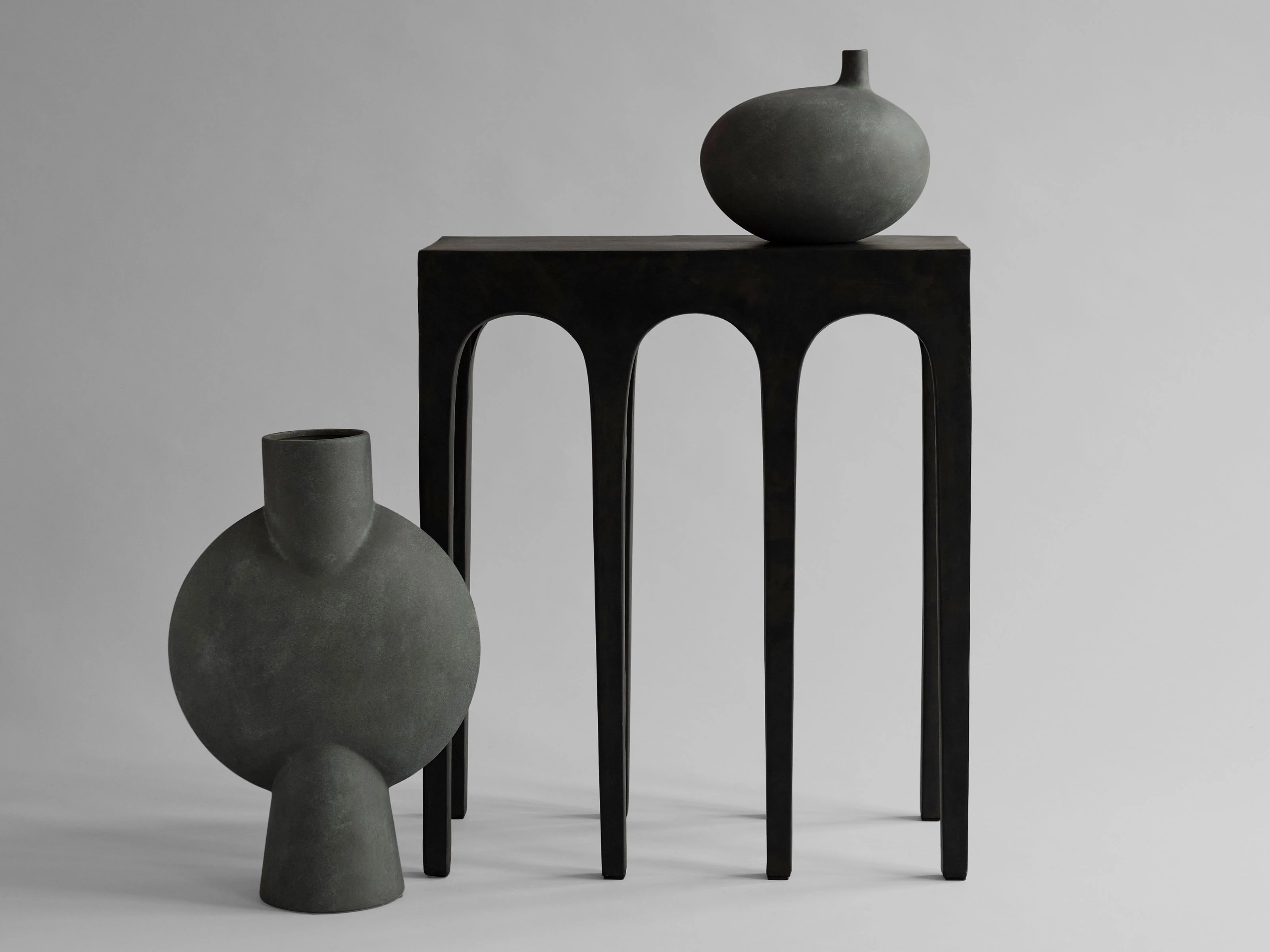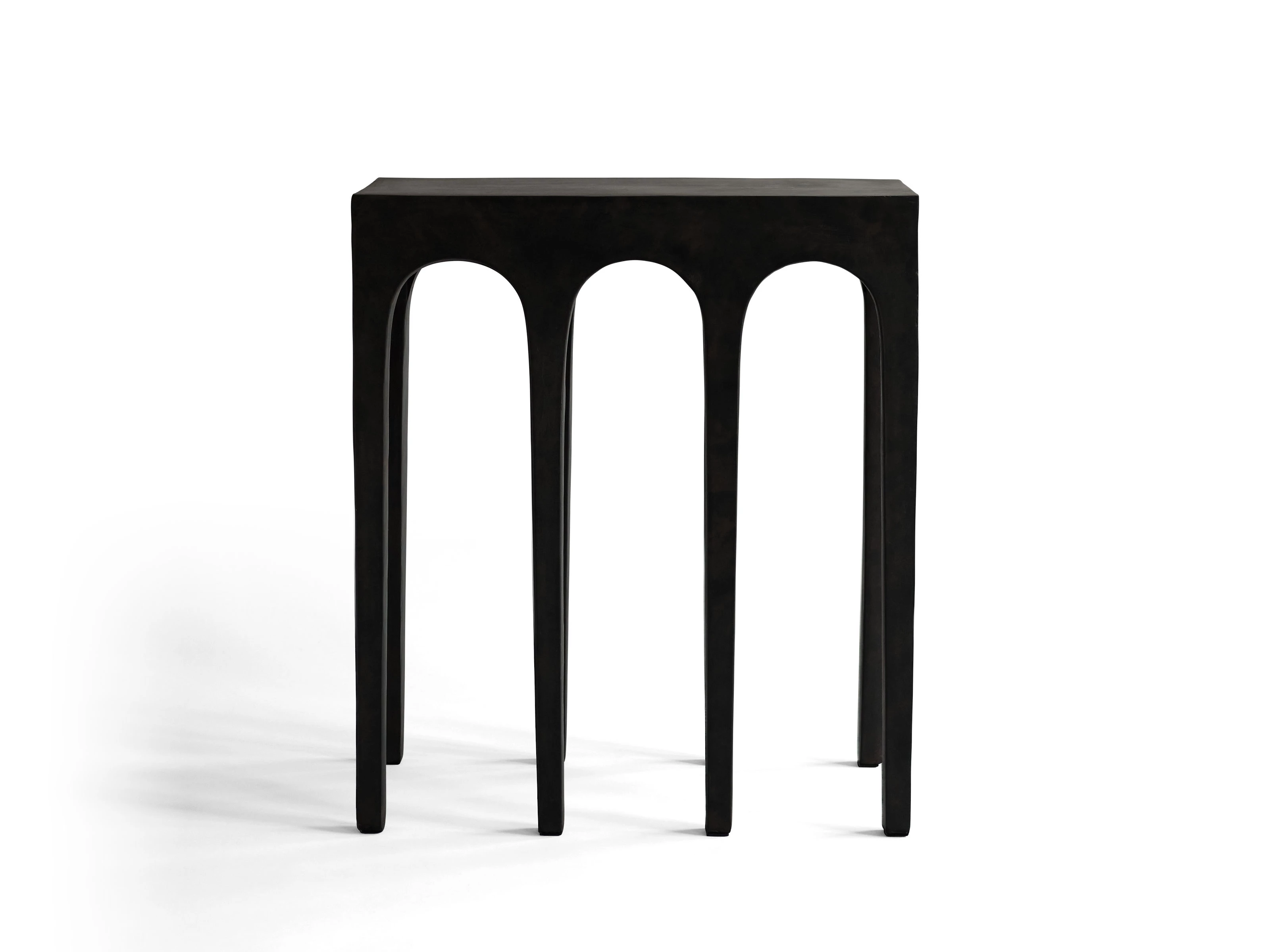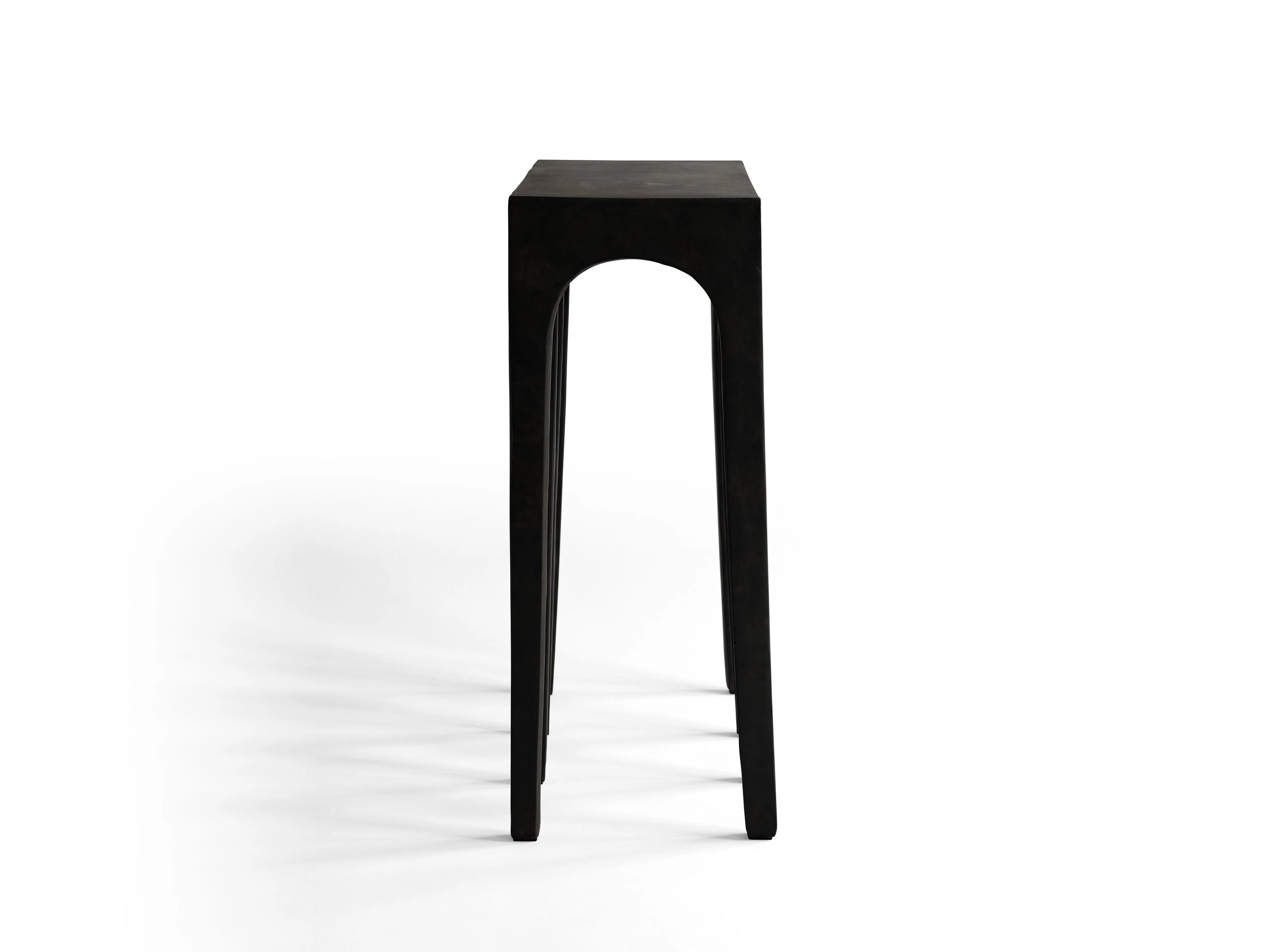 Aesthetically informed by early architectural technique, the Bow Console Table is a shapely and highly stylistic piece of modern furniture. Produced from fiber concrete, and finished by hand, each Bow Console features its own unique patina thanks to the hand-painted textured surface that results from such attention.