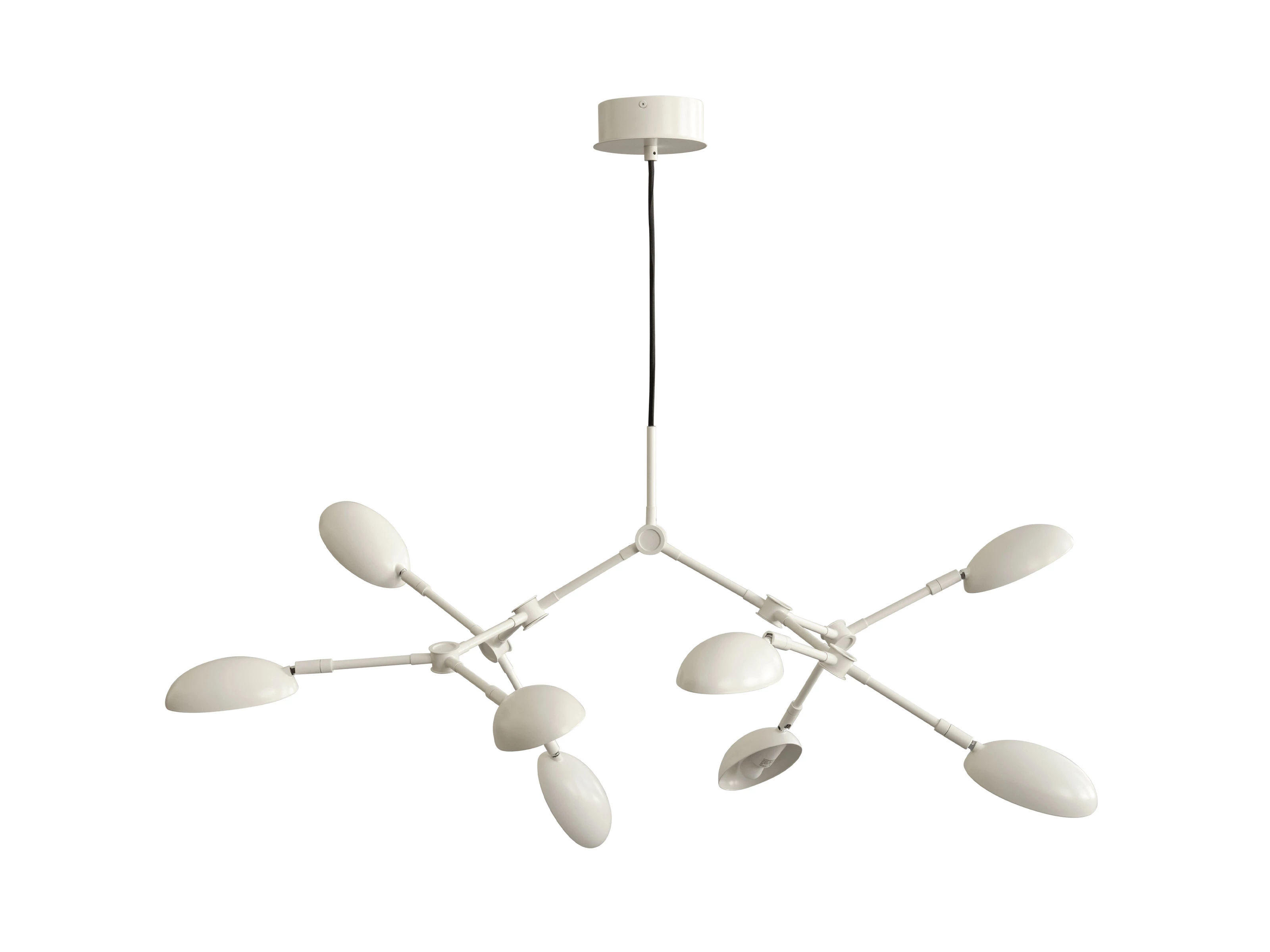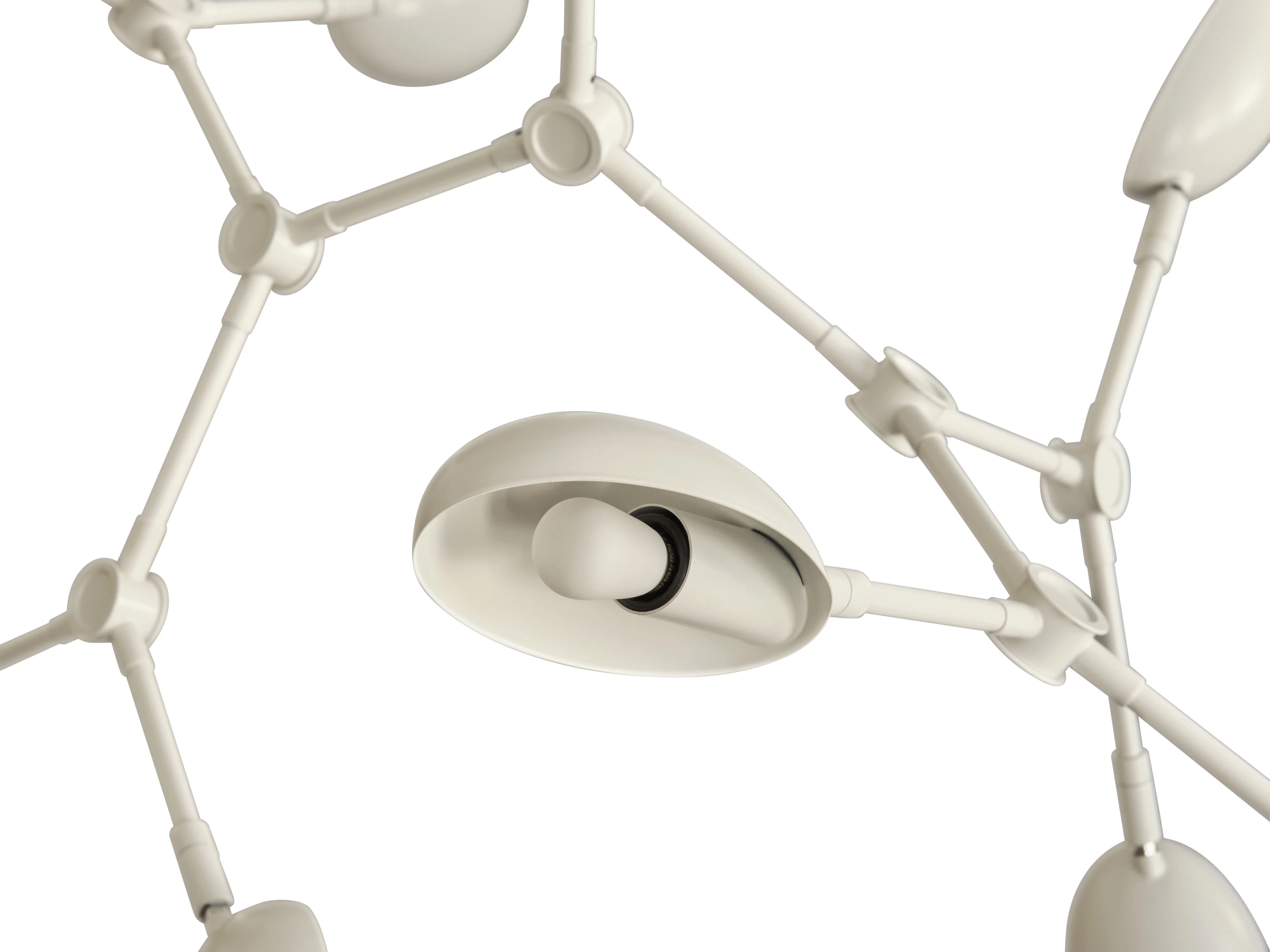 The Drop Chandelier offers a dynamic play of light, orchestrated through 14 flexible, adjustable arms, allowing for creative compositions and personalised arrangements. Gently contoured shades connected to branch-like structures create a captivating, suspended centrepiece that elevates any space.