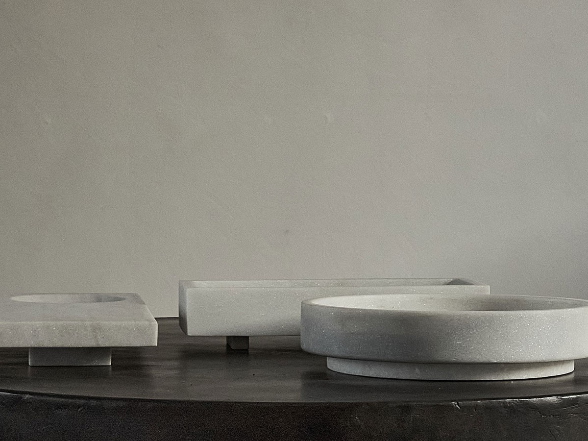 Suitable for use for holding a wide variety of items, from a simple catch all in a foyer to a more defined piece in a living room, the Formalism Tray is informed by the New Formalism architectural movement of the mid-20th century, and produced in close collaboration with a team of Indian marble suppliers in order to guarantee the most homogenous stones, with the resulting piece being one which is clear in colour and tone, and aesthetically balanced. A bowl is also available.