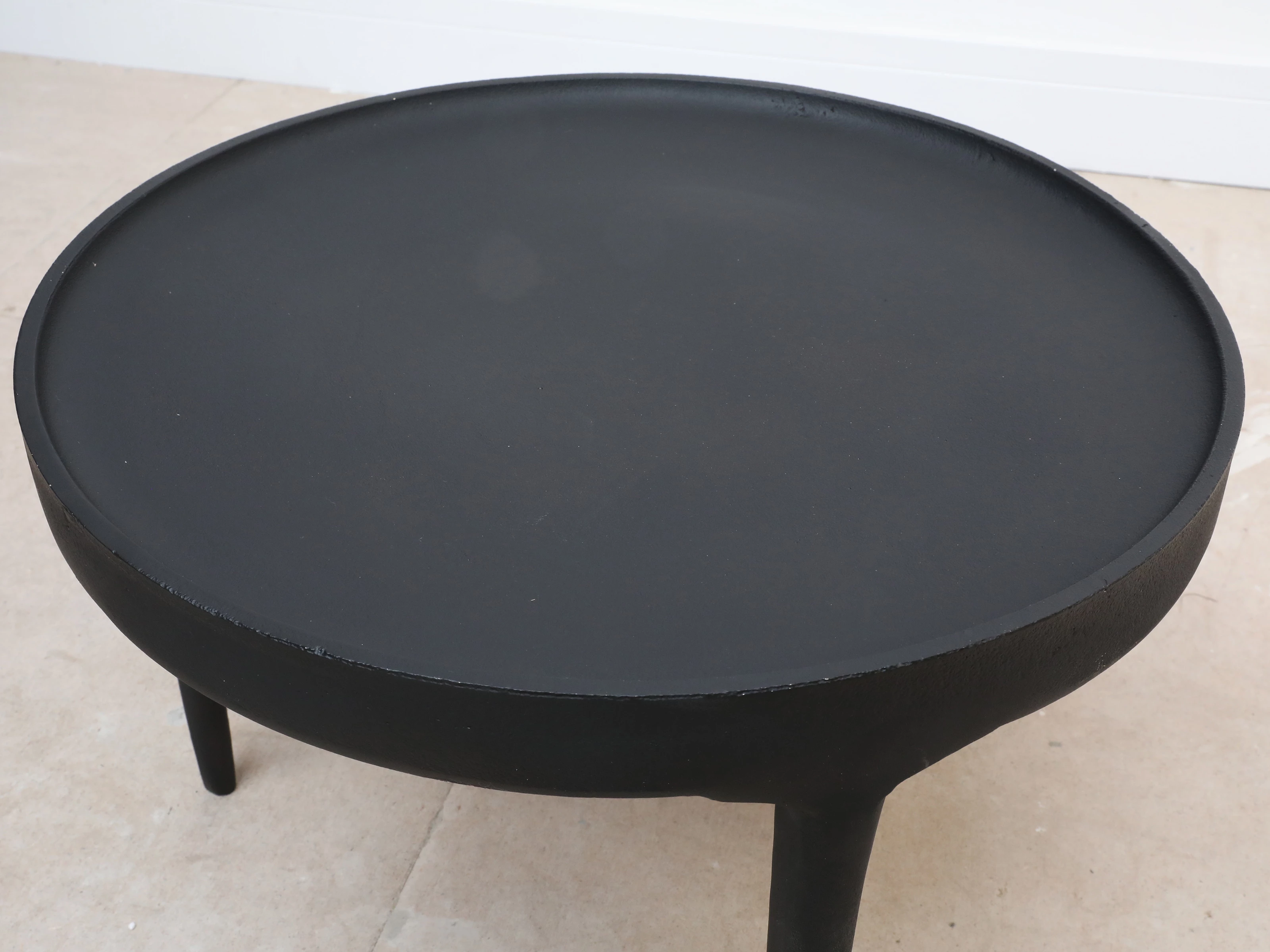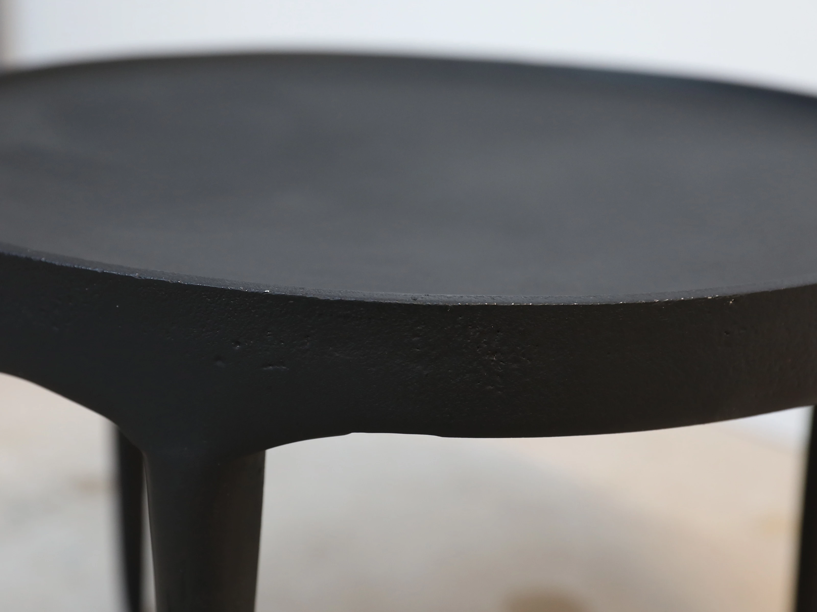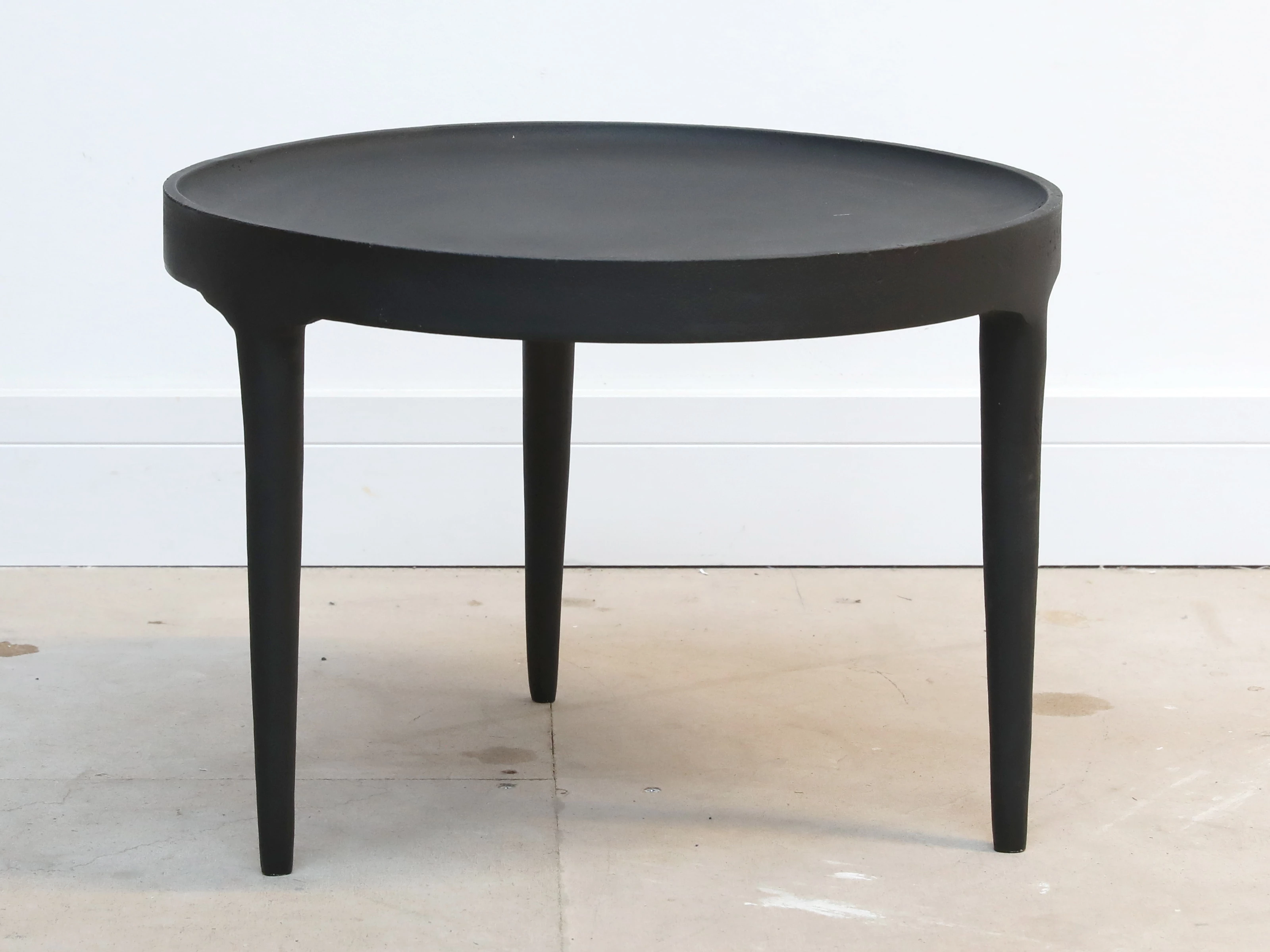 A modern piece for the contemporary home, the Phantom Side Table is cast of iron and finished by hand, making each table unique with its own patina. The solid nature of the materials involved in its production contrast neatly with the shape of the piece, which appears slight and delicate, and is rich with character and a sense of style.