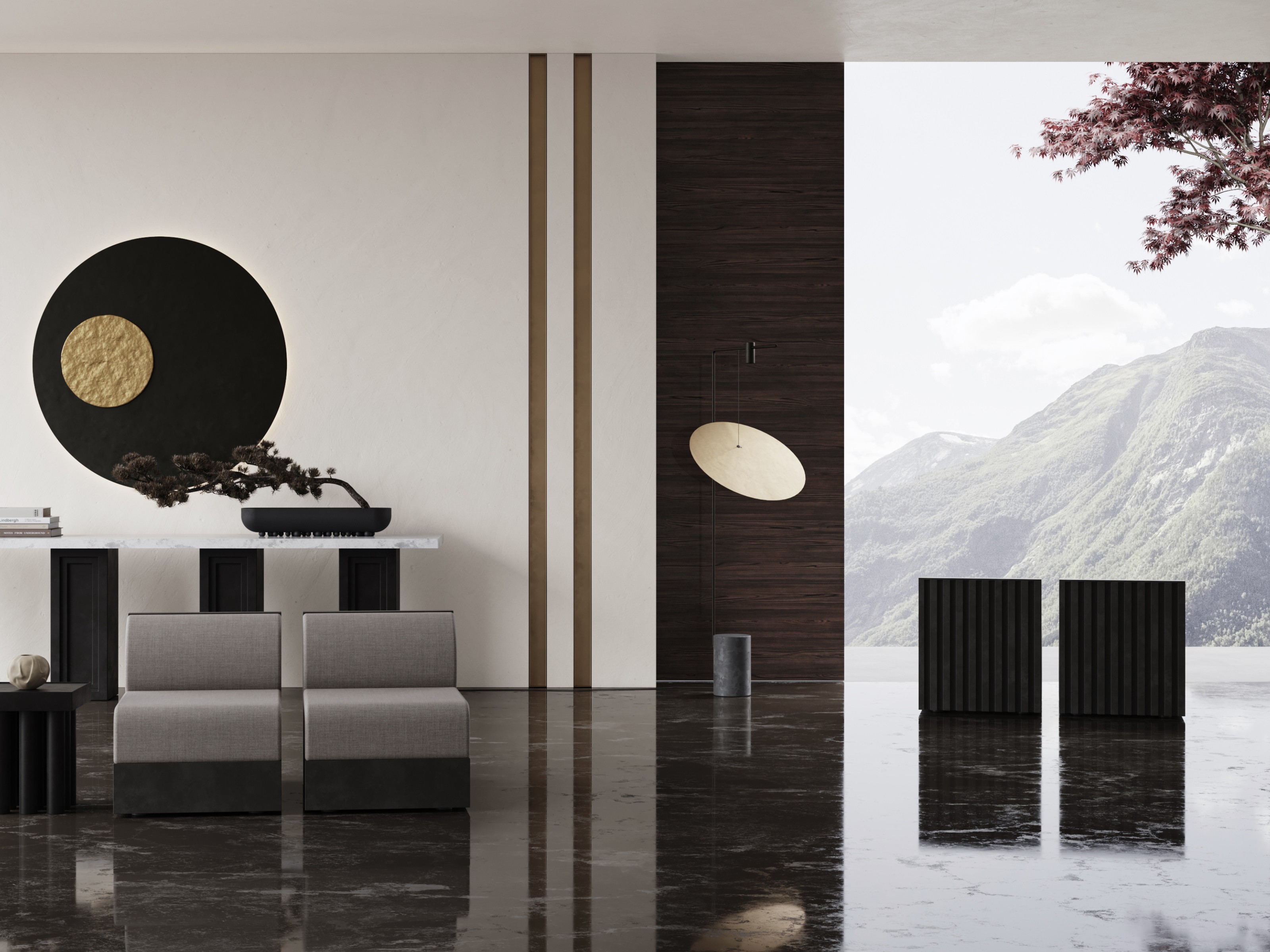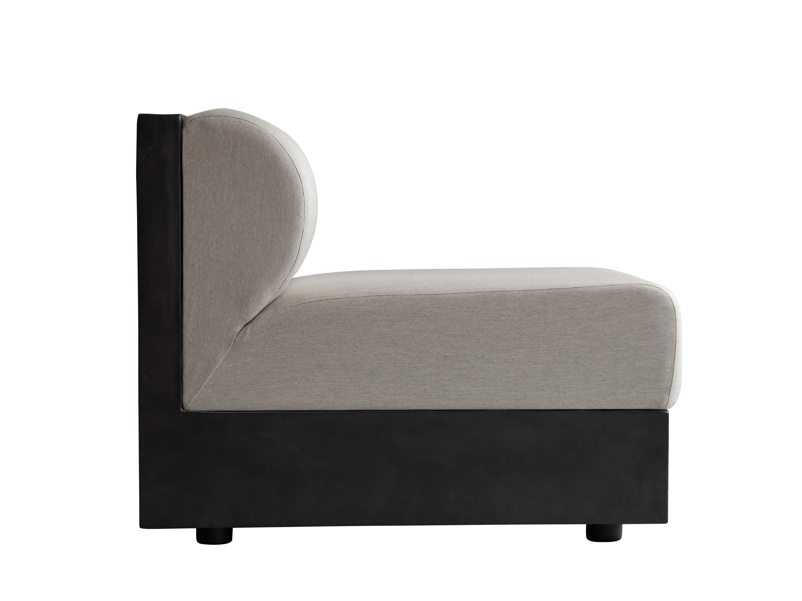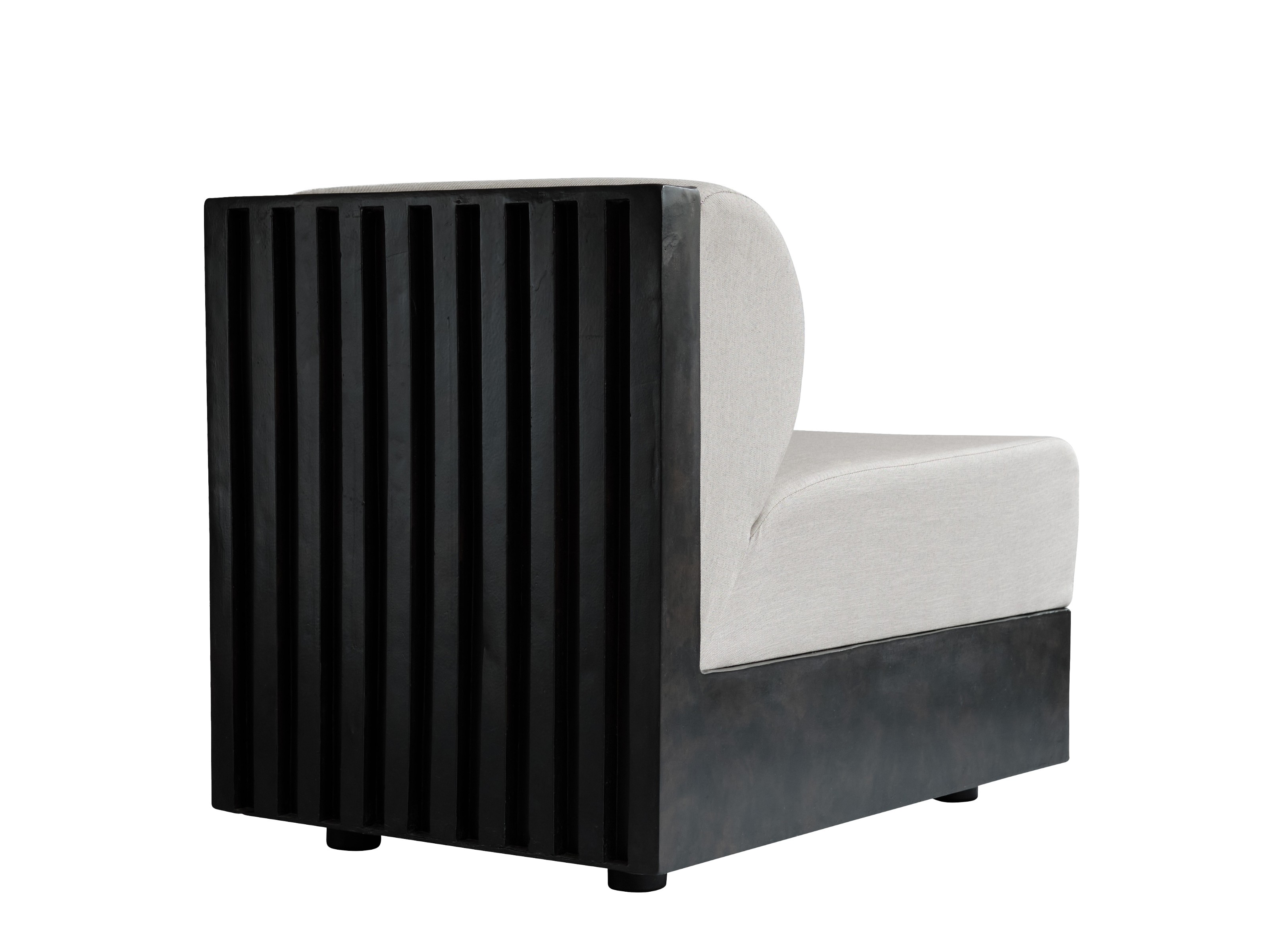 Soft upholstery meets a fiber concrete frame, with the Tribu Lounge Chair. The Tribu carries an air of significance and weight, with the heavyset aesthetic housing a seat which is pleasantly comfortable. A detail-rich back lends a sculptural quality to the piece, which is inspired by architectural concrete lamellas.