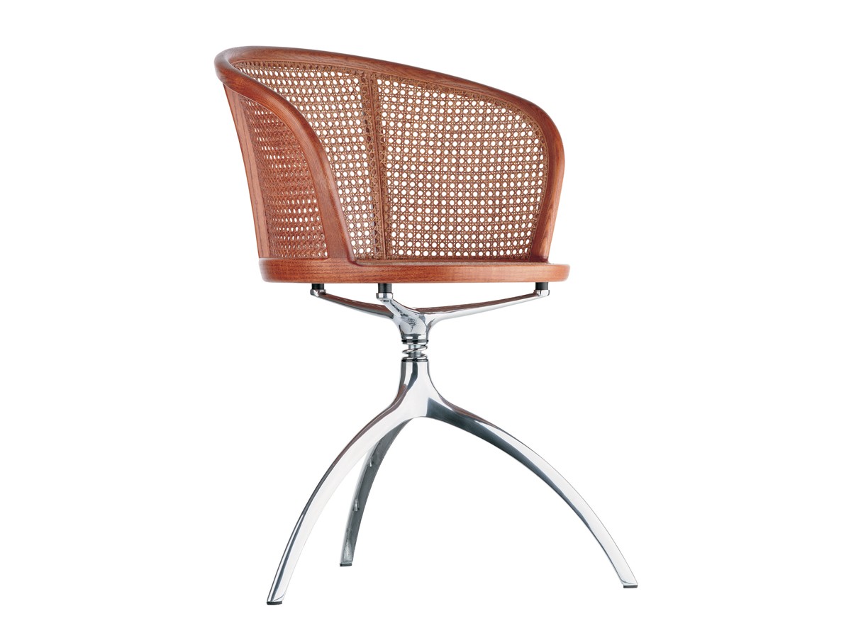 Structure in die-cast polished aluminium, seat and back in Viennese cane.