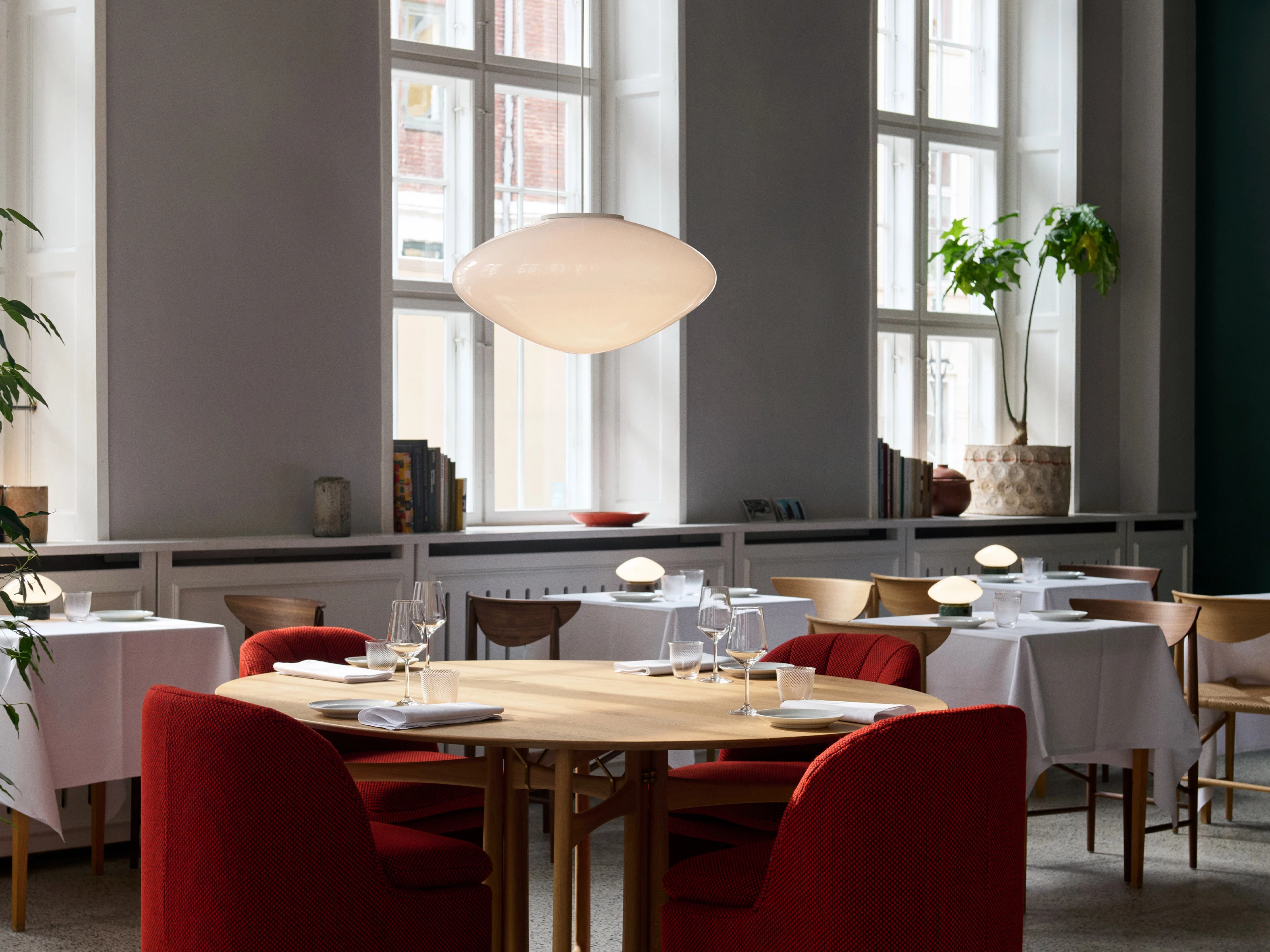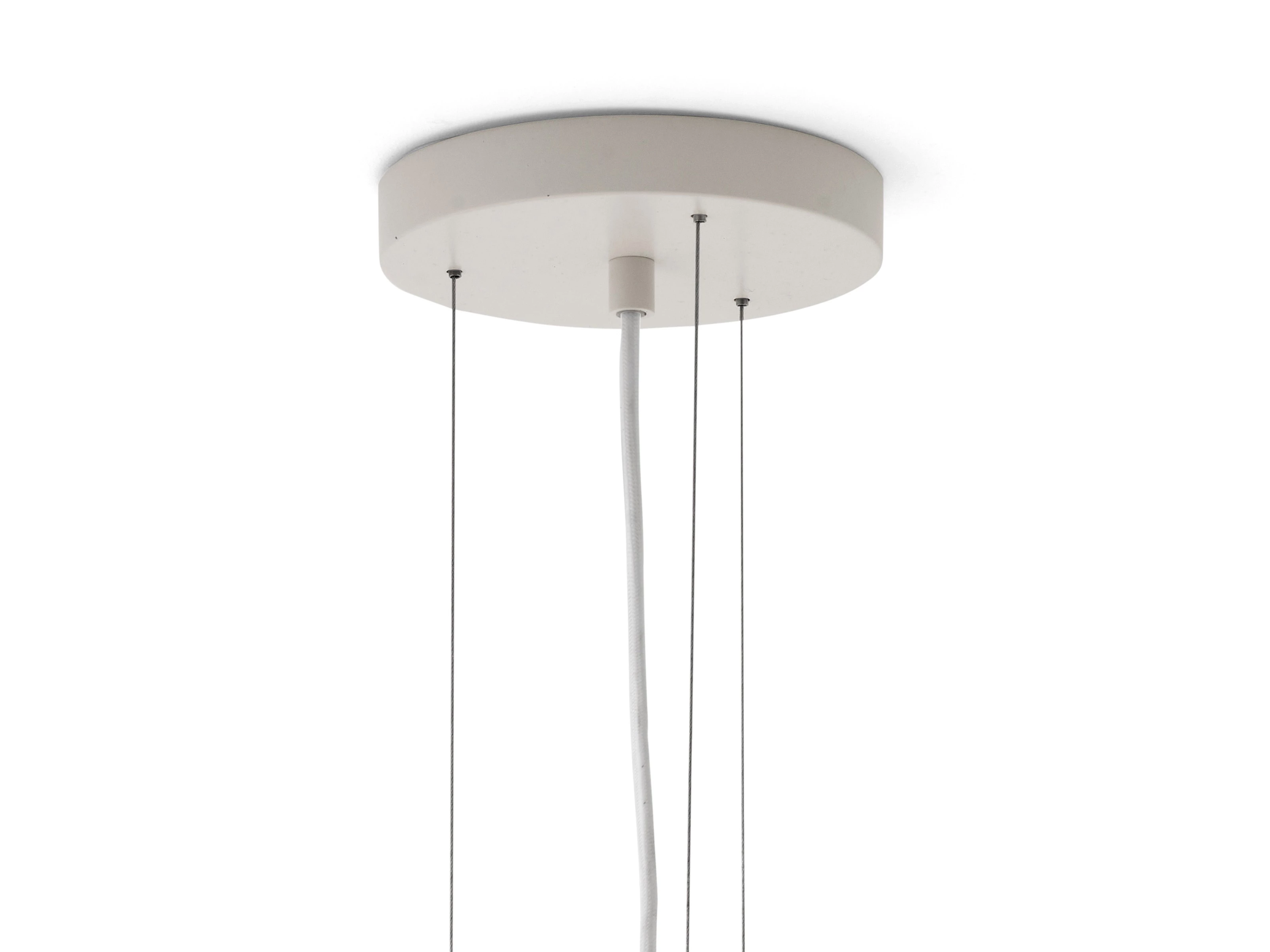 Hung solo above a dining table, stairwell or open space, it creates a calm focal point that feels quietly dramatic. The light settles the room, casting an ambient glow that is refined, airy and deeply atmospheric.