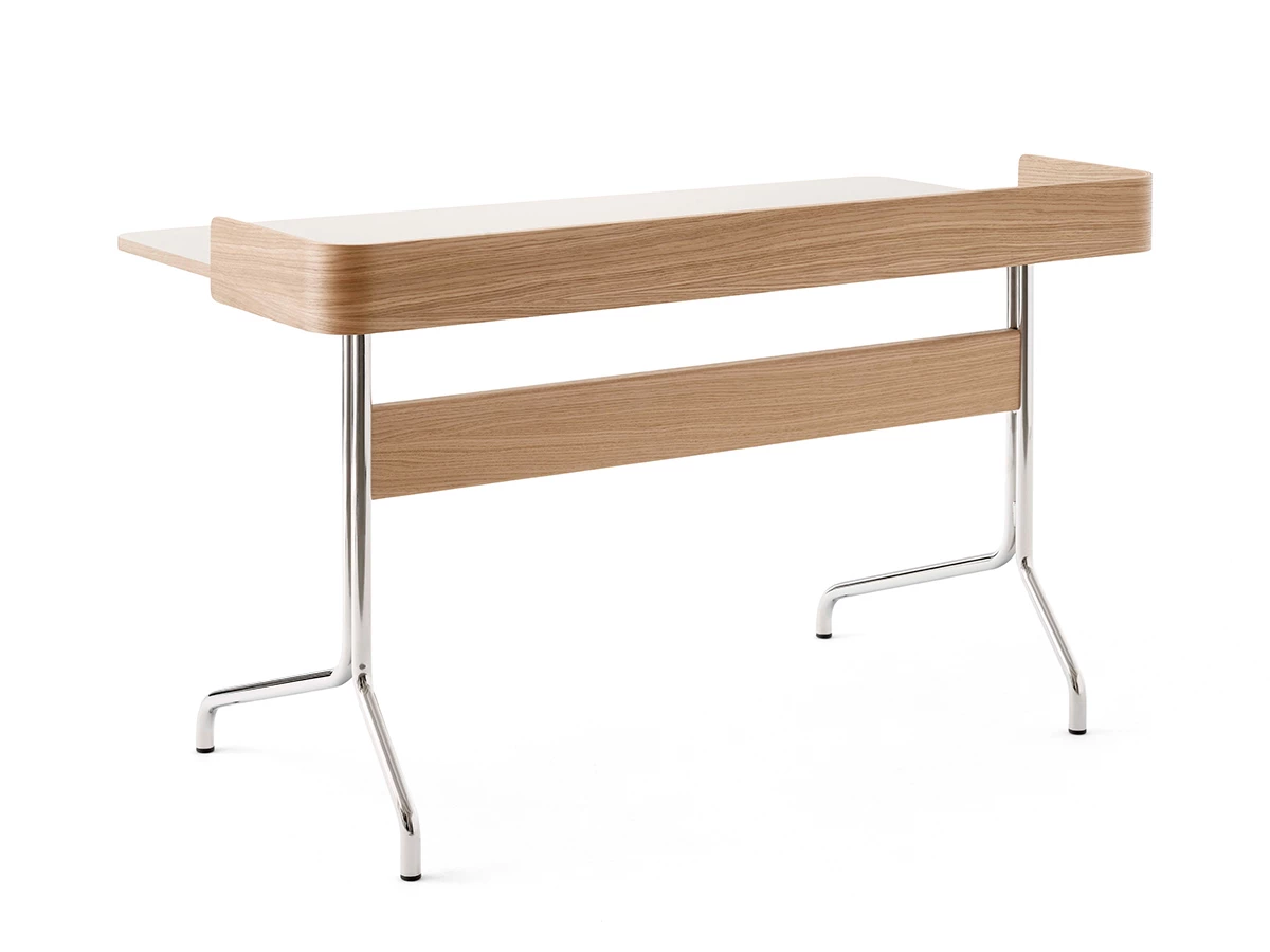 Drawing design inspiration from the iconic Langelinie Pavilion in Copenhagen, the AV17 Pavilion Desk was intended to suit both office and home spaces. Taking into consideration the demands of home-working, AV17 features a light and compact design, with a back panel perfect for a display of accessories as well as providing an organised set-up for a working environment. Available in two contemporary finishes, AV17 embodies an elegant design that is also available without a back panel.