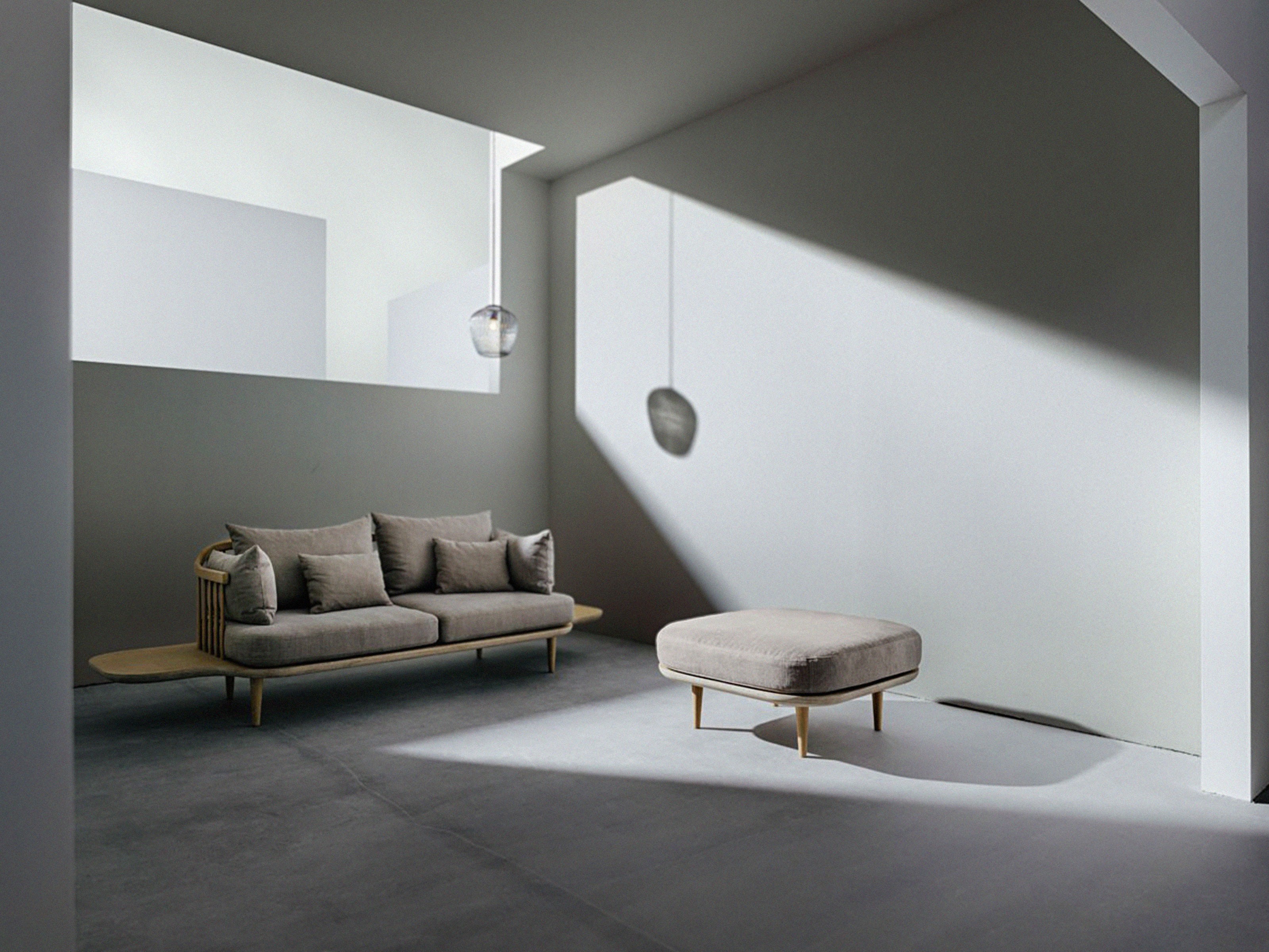 The solid oak wood base is finished with white or smoked oil treatment, ensuring the material only becomes more beautiful with age. The SC9 Pouf is the perfect accompaniment to the &Tradition Fly series.