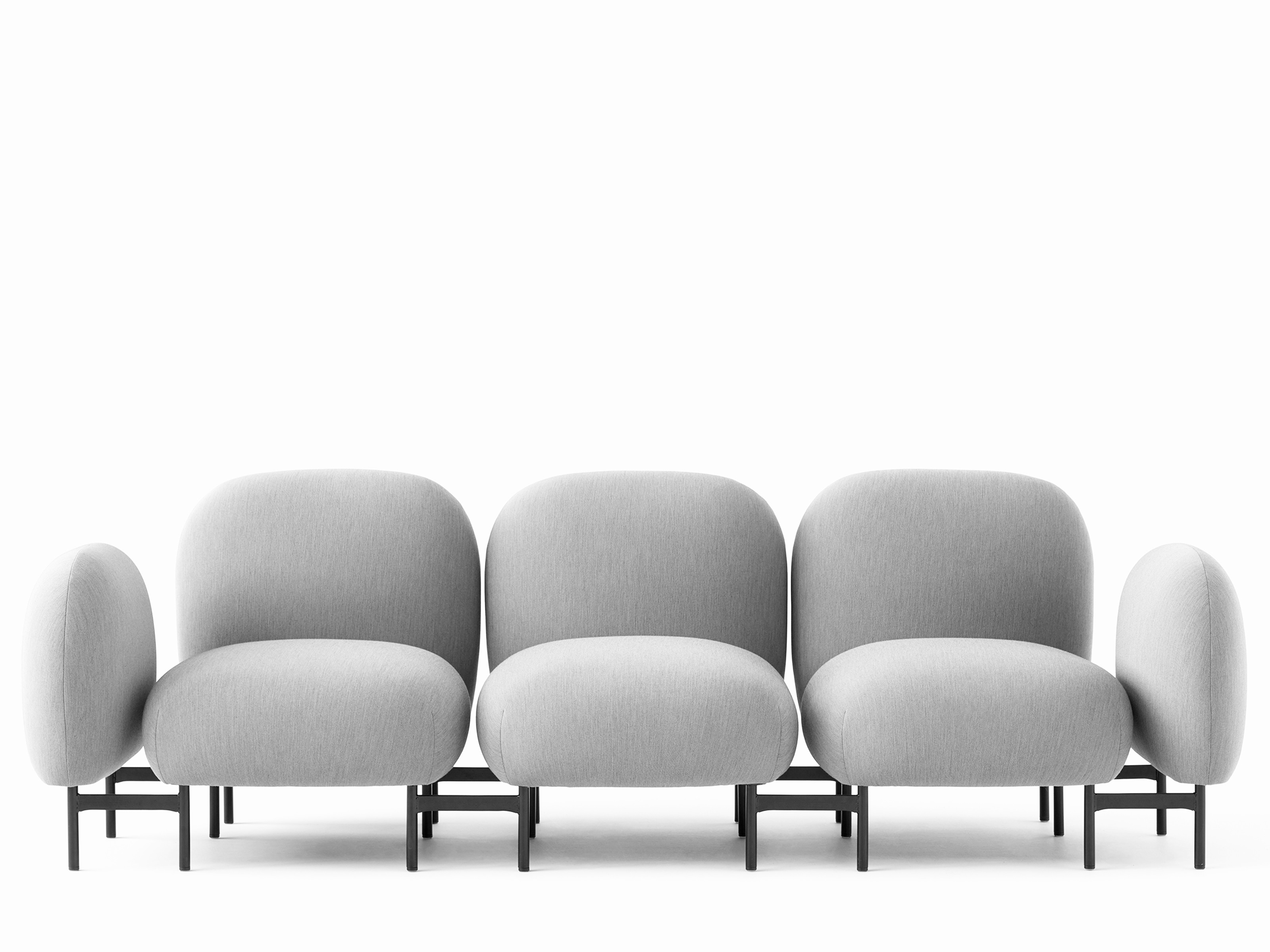 With a bold, graphic composition inspired by the organic forms of pebbles, the three-seater sofa creates a spacious, striking seating arrangement. The process of the design was inspired by the principles of the traditional Japanese poem, Tanka, where one person starts the poem and the other finishes it. Nendo started the design with the creation of the rounded modular forms, with Nichetto completing it with the connecting bases, tables and frames, resulting in an innovative structure that acts as its own unique island of connectivity and minimalist elegance. Also available as a 1 seater sofa armchair or a 2 seater sofa.