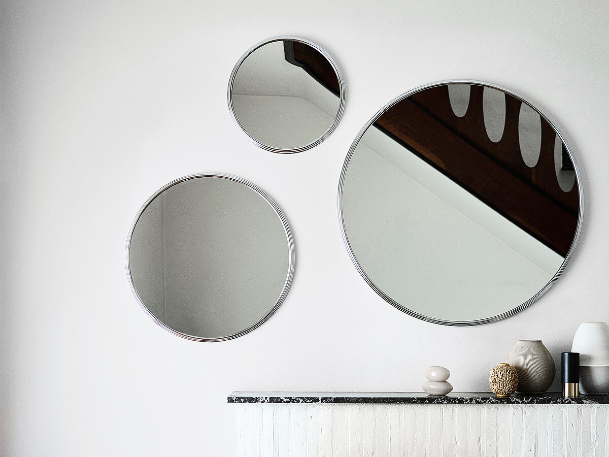 Sillon, meaning ‘groove’ in French, refers to the textured, furrowed structure that encases the mirror, creating a contrasting and stylish effect that can truly frame a reflection. Comprised of three different sized circular shapes, and available in either a brass or chrome finish, the mirrors can flexibly adapt to a range of wall spaces and decors. Whether utilised individually in a bedroom or used in a graphic cluster in a hallway, the Sillon Mirrors can beautifully lift a room, creating a sense of space, light and sophistication.