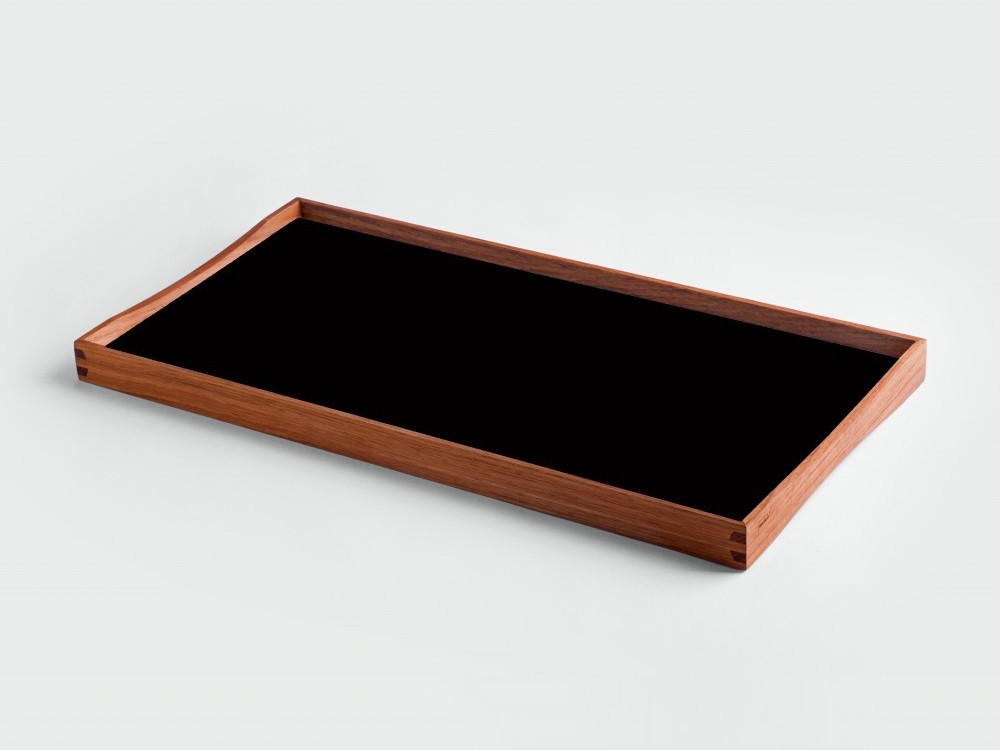 Made without handle bars, the tray’s curvature allows space for all sizes of hands, from child to adult, to pick it up. Designed as dual-sided, the Turning Tray boasts two glossy laminate sides, one always in black, held together by carefully crafted corner joints.