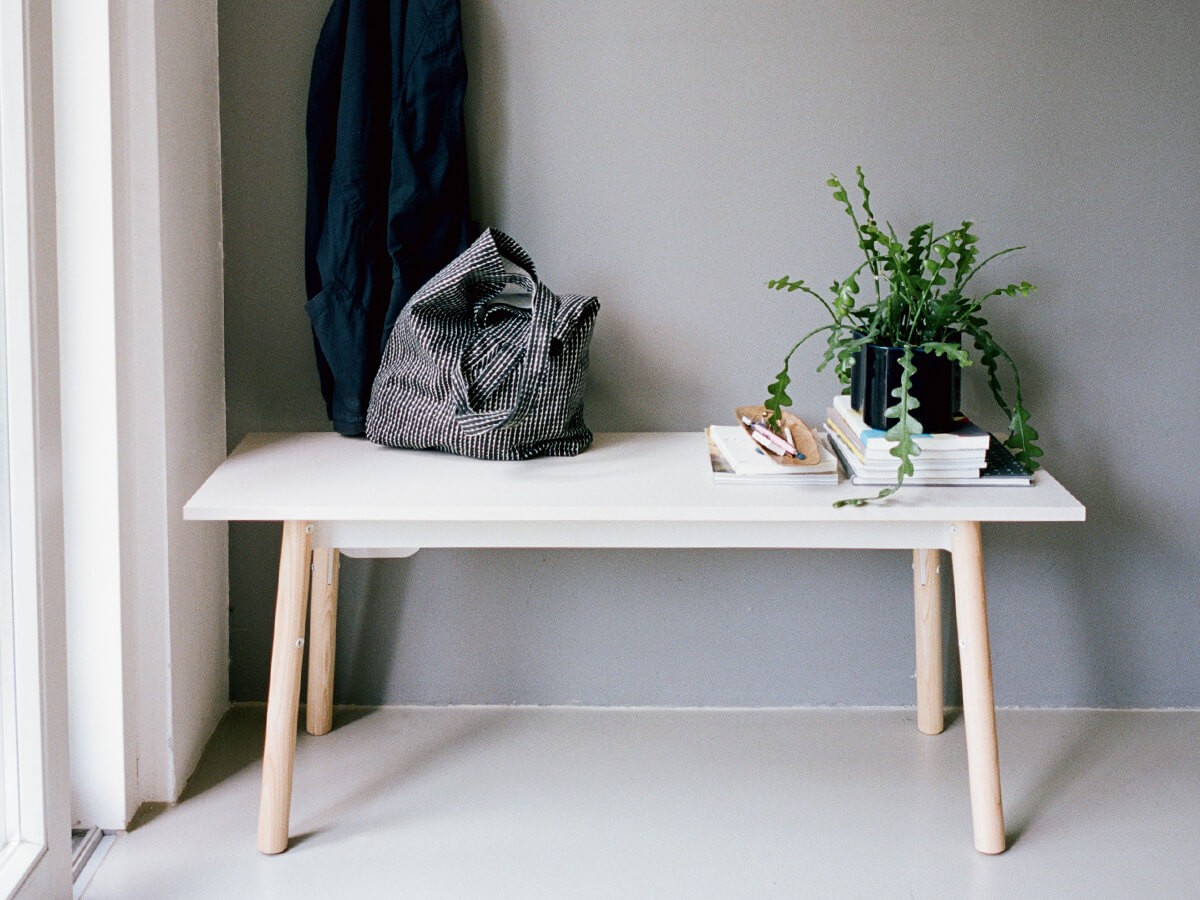 Like all pieces in Daniel Rybakken’s Kiila collection, the Kiila Bench displays its construction proudly, with wedge-shaped metal joints and polyamide pins left purposefully visible. The bench can be used for sitting or storing, displaying favourite objects or dividing larger spaces. A sturdy piece designed to last, this versatile bench is at home in a range of interiors, from under a coat rack in the hallway to in a living room providing occasional seating.