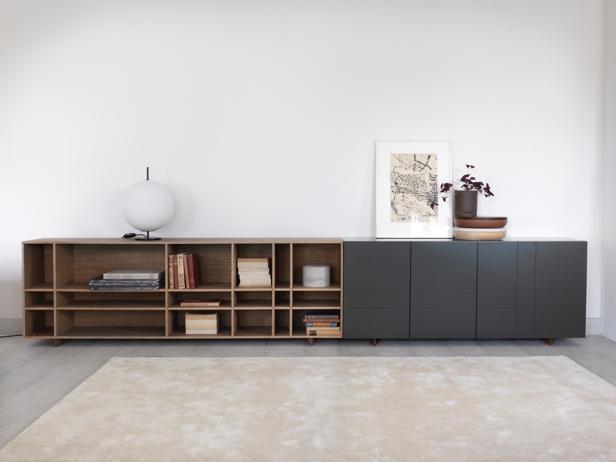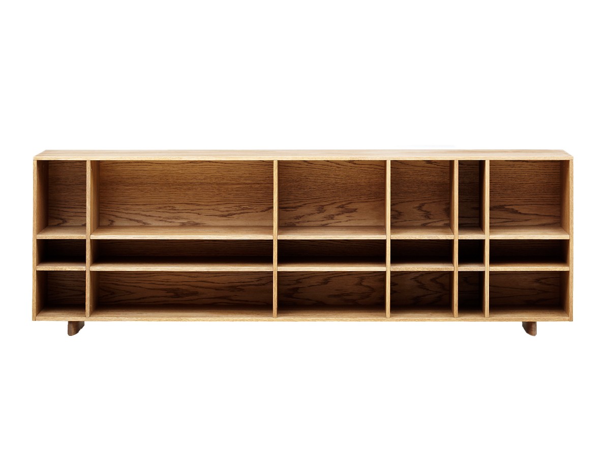 Punctuated by unique proportions, the Asplund Kilt Open 180 Storage Unit injects elegant Scandinavian design to any room. Part of the Kilt series, the unit features irregular sections, reminiscent of the lines within a tartan pattern and the architectural principles seen in the golden ratio theory. Claesson Koivisto Rune drew upon these concepts when creating the series and translated the grid-like lines into functional yet beautiful storage solutions. With modern open-fronting finished in an exquisite oak veneer, the extensive storage unit offers versatility as a sideboard or room divider.