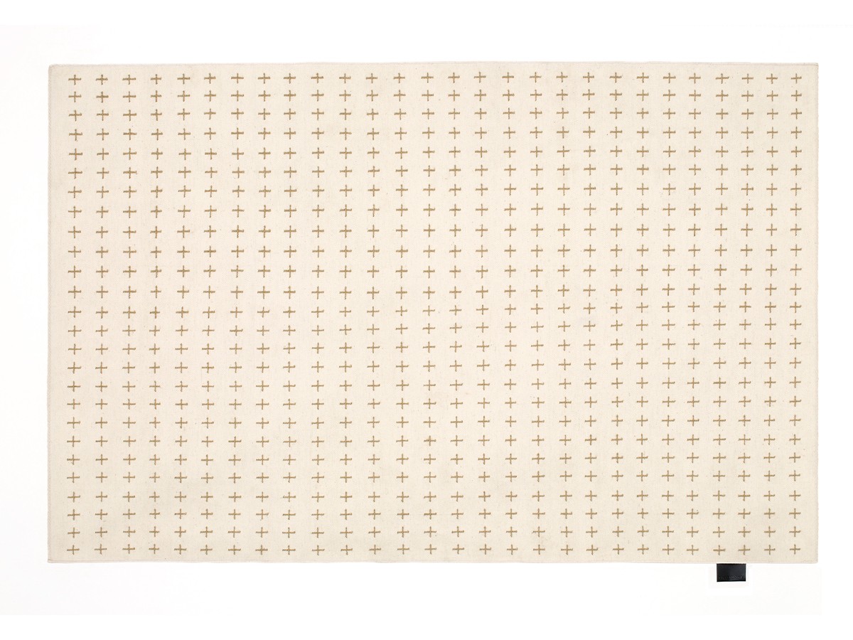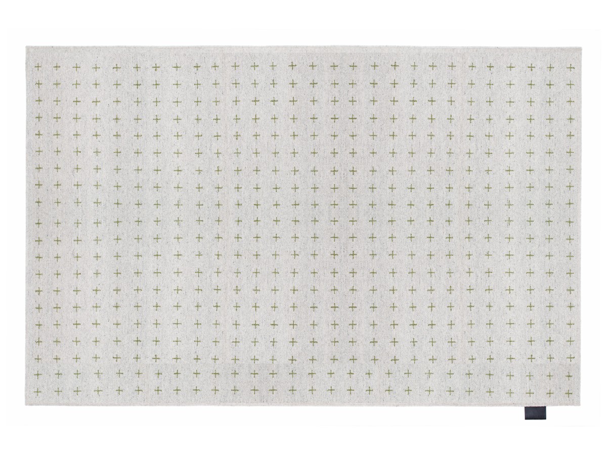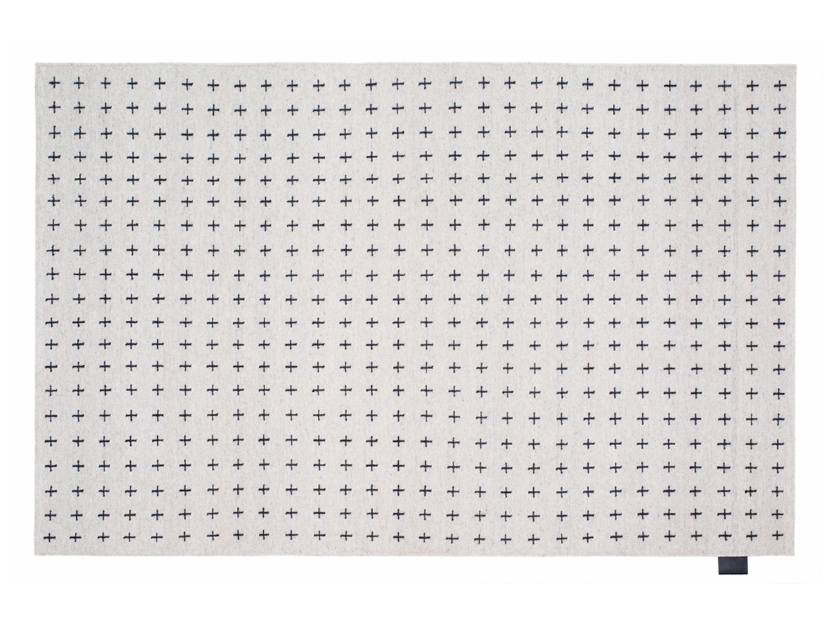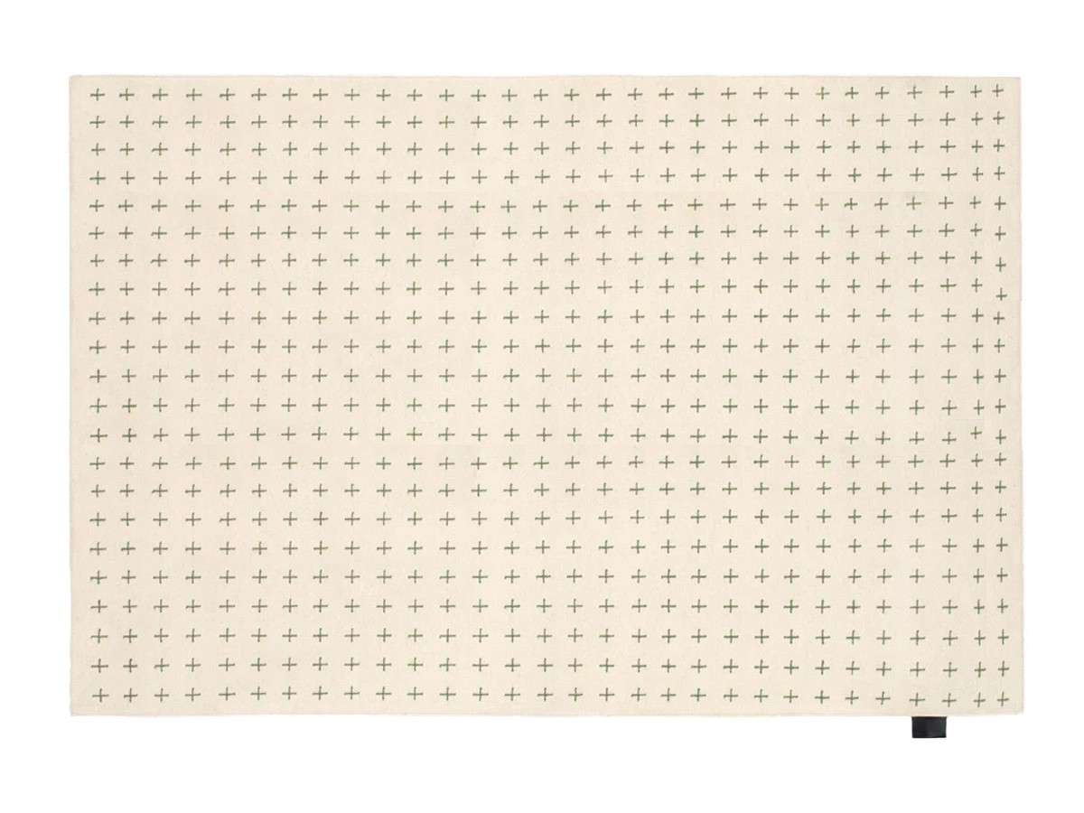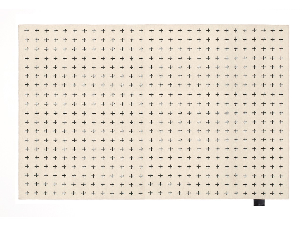Muted yet comforting, the natural grey and white base tones of the Asplund Stitch Rug creates a warming environment, impacted by the contrasting tones of the striking cross pattern, available in olive, black, camel, and white. The dhurrie rug applies traditional nomadic techniques, with the hand-woven natural wool made manually by skilled craftsmen on traditional flat looms. Consistently placed across the rug, small stitches create a minimal cross pattern that relates to Wallen's classic designs. Ideal for open-plan spaces, bedrooms and living rooms.