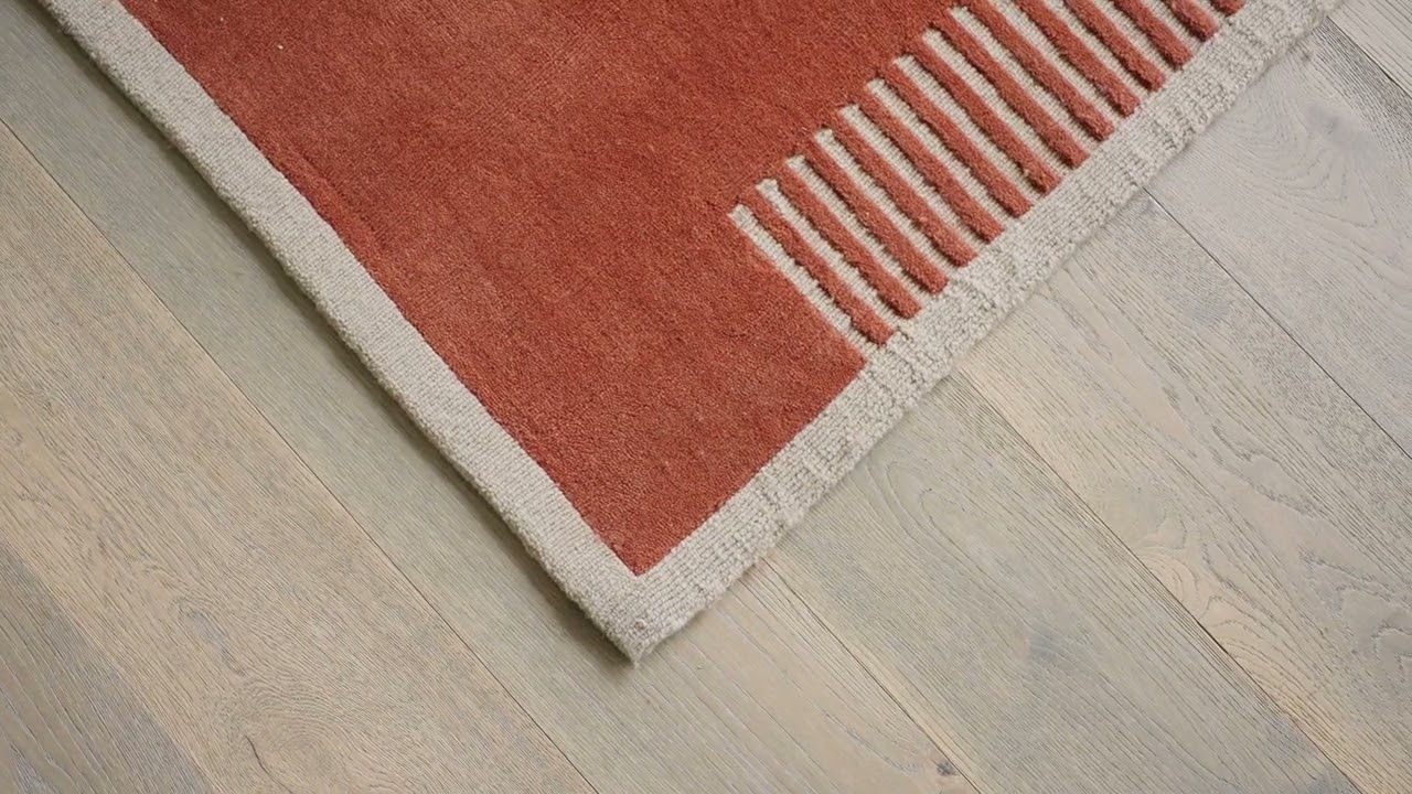 Inspired by classical architecture, the Duomo Rug combines a luxurious cut loop pile with contemporary design. Its refined wool composition, accented with striped edges, is available in a range of colourways including Terracotta Red which echoes Audo House’s iconic facade.