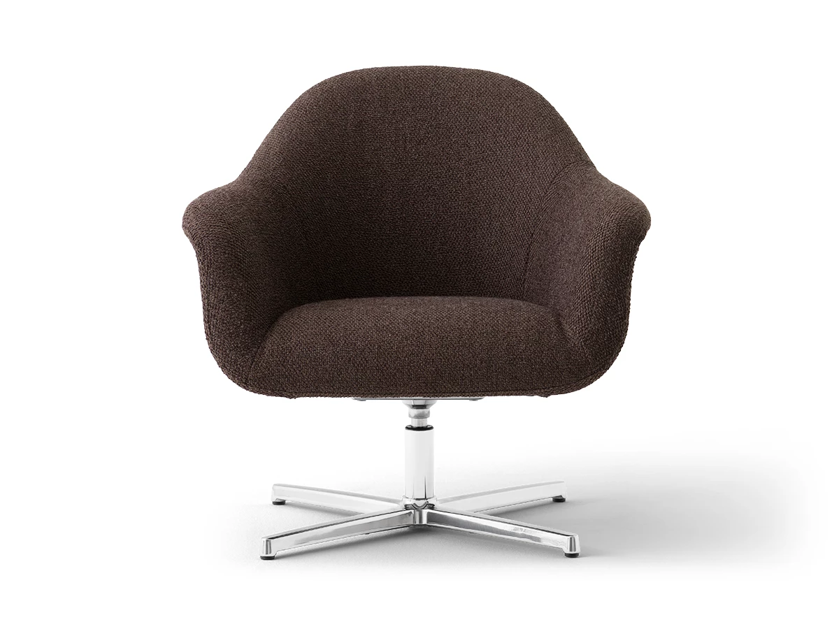 Deep cushioning and refined upholstery - from tactile bouclé to structured wool blends - heighten the experience. Choose a polished or powder-coated aluminium four-star base and make it yours. In a living room, suite or workspace, the Harbour Swivel Lounge Chair surrounds you in poised comfort and effortless sophistication.