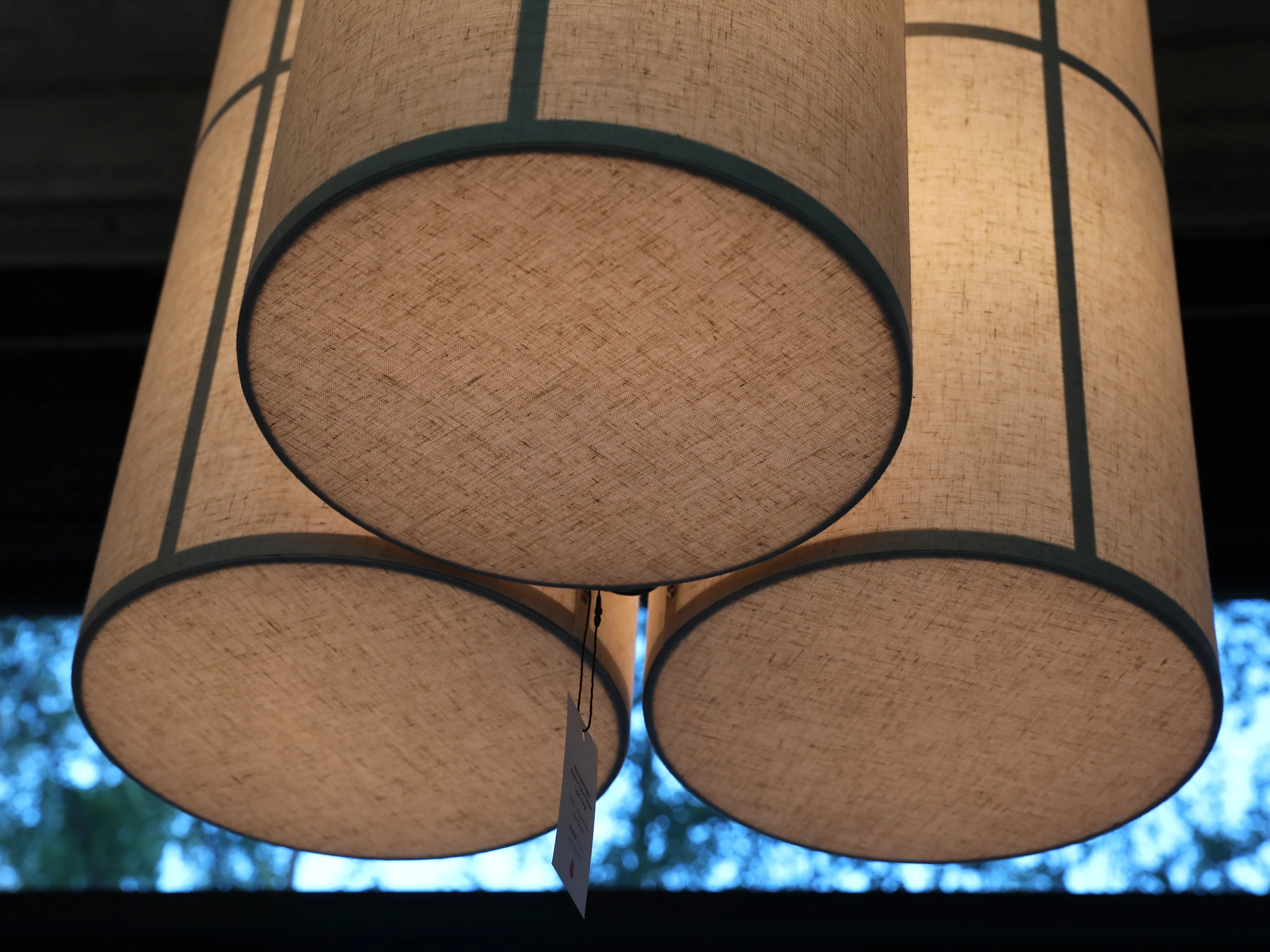 Named Hashira after the Japanese name for column or pillar, a trio of pendants have been clustered together to form a distinctive, geometric design; adding a modern twist to a traditional Japanese lantern design. Creating beautiful channels of light, the elegant shades have been crafted from soft, translucent fabric. Wrapped over a steel frame, the fabric subtly reveals the structure within and casts ambient, cosy light.