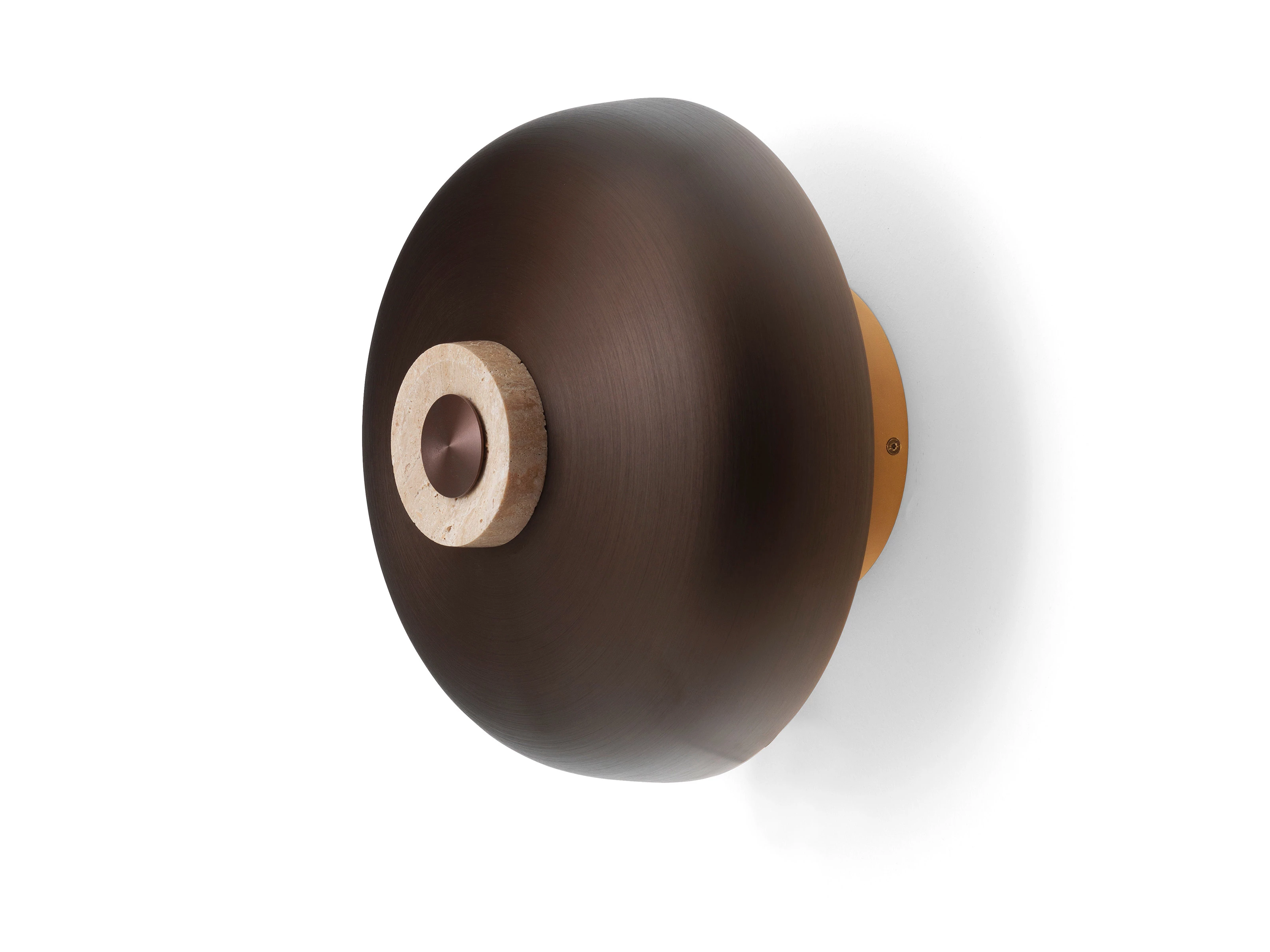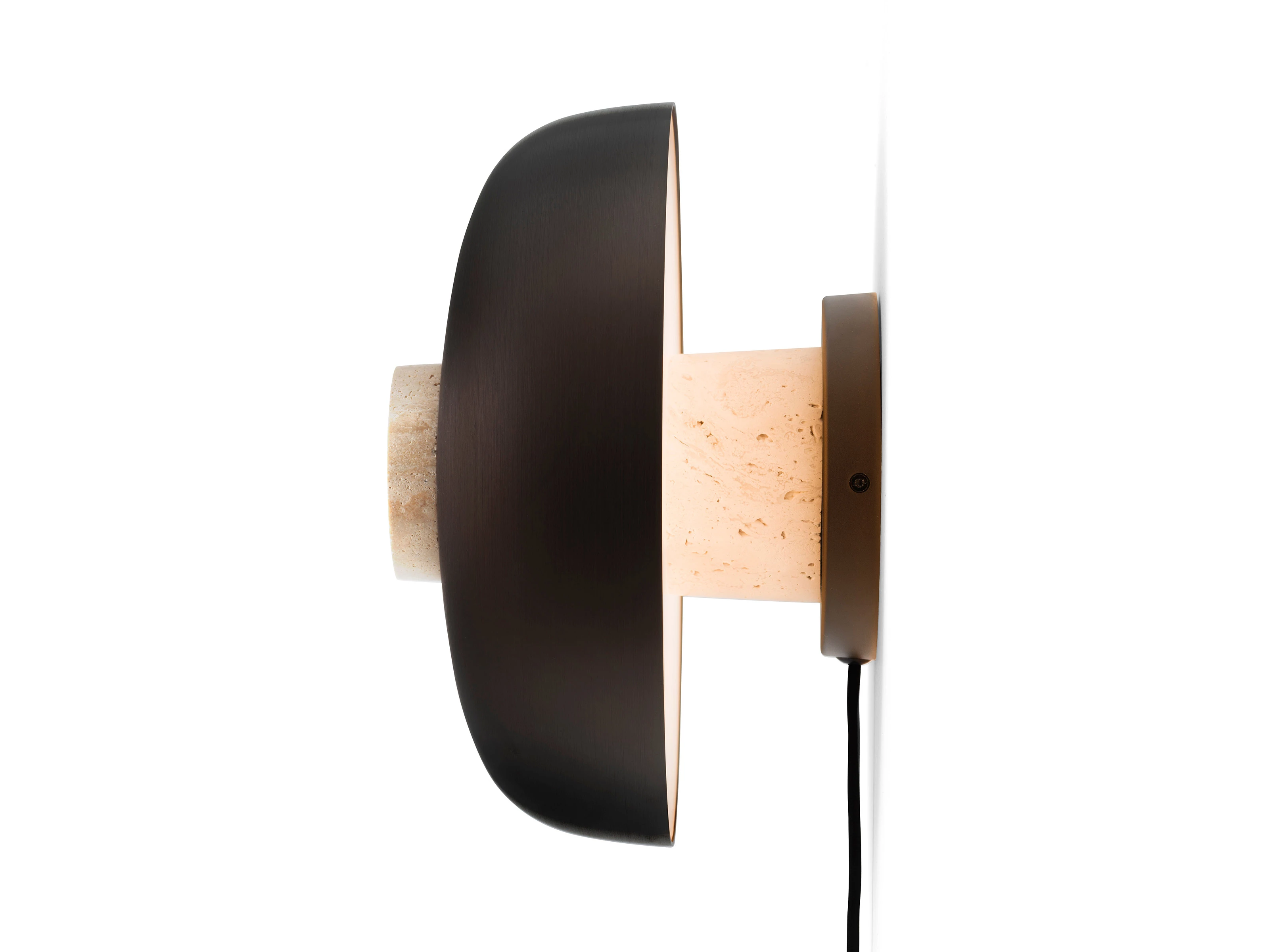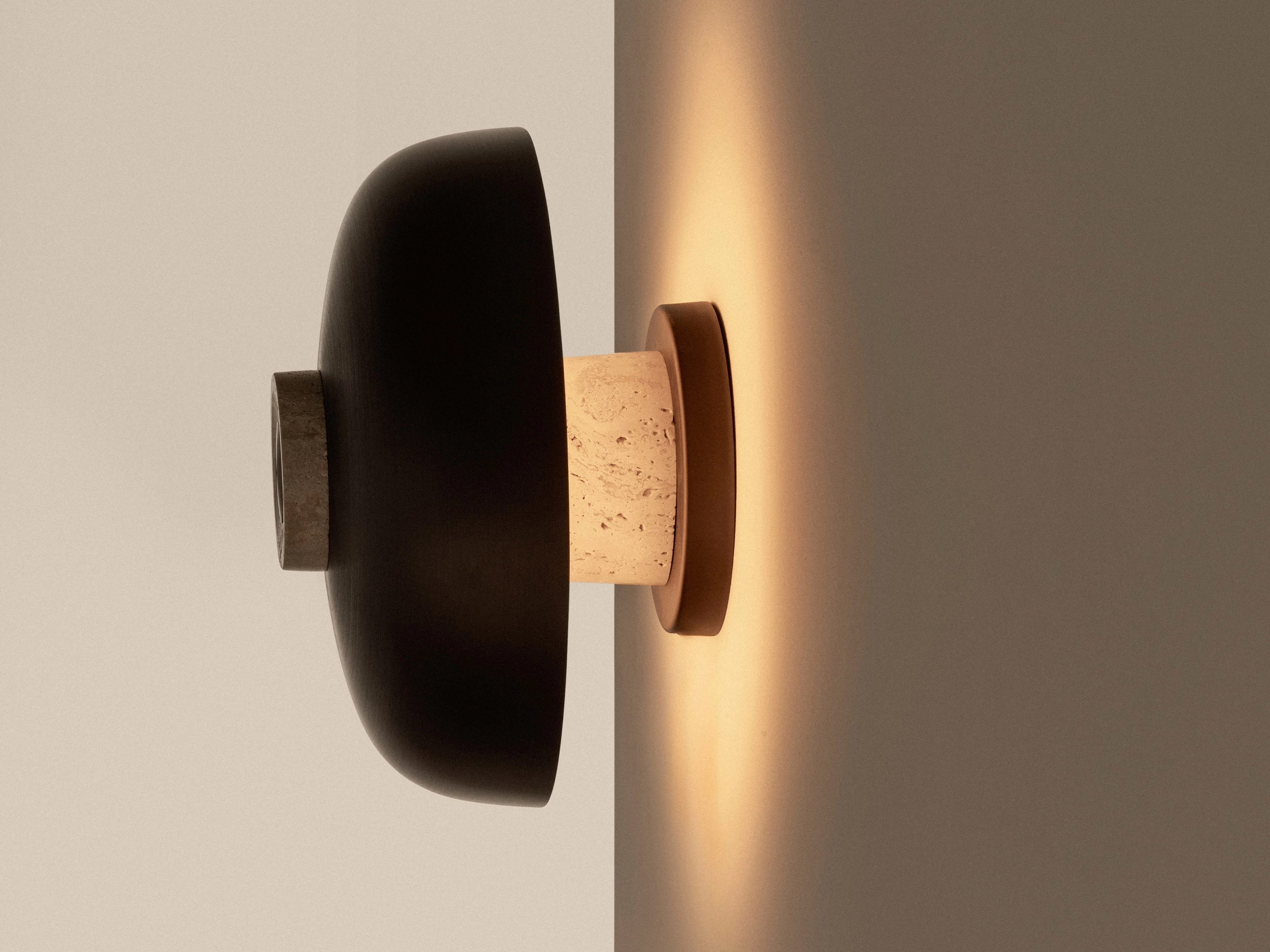 The Reverse Wall Lamp brings an effortless sense of calm and sophistication to any space. Crafted from raw travertine stone and bronzed aluminium, its contrasting organic textures evoke a feeling of grounded luxury. As it casts a warm, gentle glow through its opal diffuser, the lamp transforms interiors into tranquil retreats, inviting relaxation and comfort.