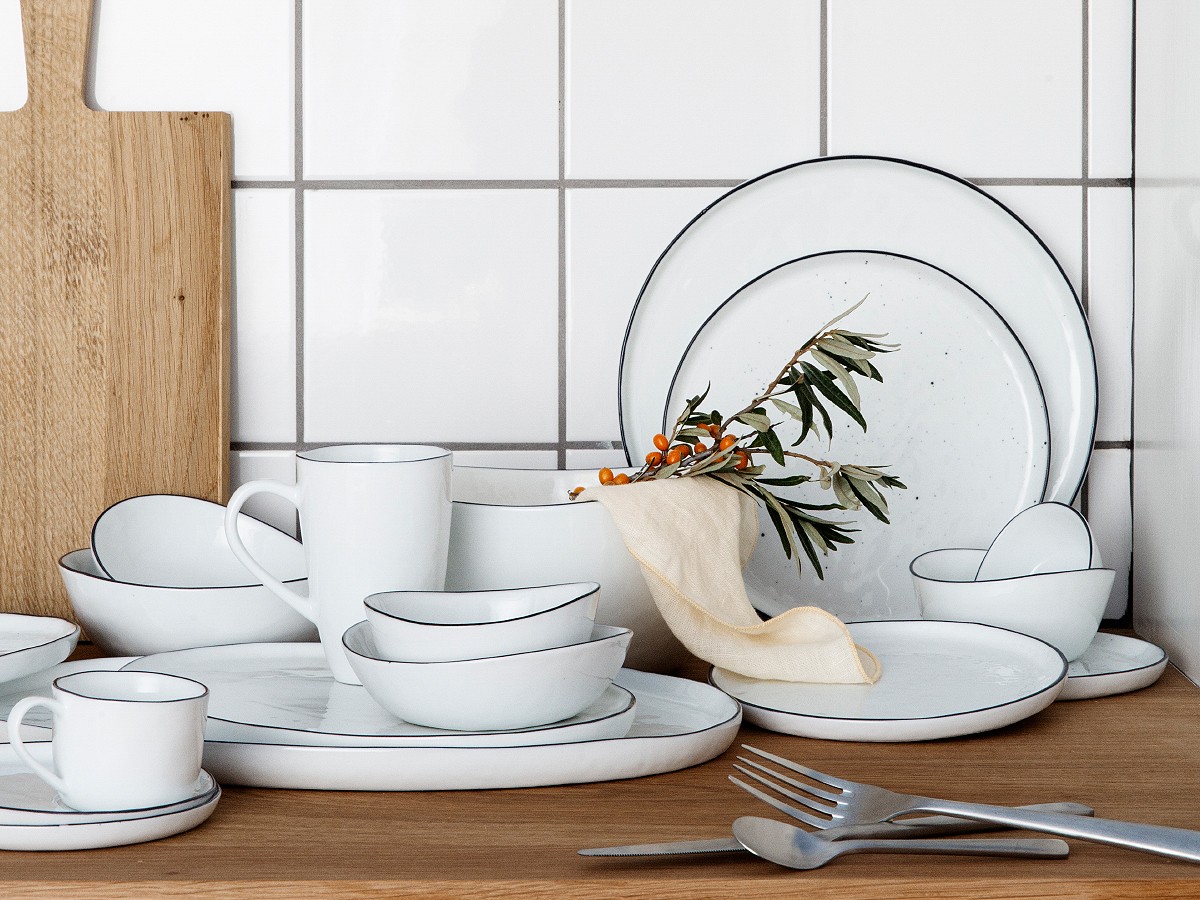 Inspired by natural mineral salt, the Broste Copenhagen Salt Side Plates are created from beautifully glazed stoneware with a minimalistic aesthetic. With a classic soft white tone and hand-painted black rims, each piece is unique, slightly differing in shape, colour, and finish, adding to its rustic character. Utilised for a special occasion or for everyday use, the Broste Copenhagen Salt Side Plates are a perfect addition to any table setting.