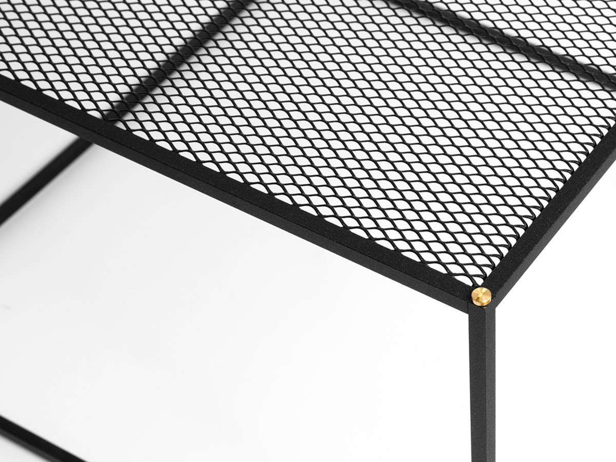 Innovatively crafted from matt black steel and perforated mesh, the distinctive, textured material creates a lightweight, spacious structure that can coordinate perfectly with the modern home. Available in a sleek black finish, the contemporary coffee table has been fitted with Buster + Punch signature solid metal coin screws in a choice of brass or steel, adding a subtle yet stylish finishing touch. Perfect for placing in front of a sofa or lounge chair, the Meshed Coffee Table can be utilised individually or in a group to create larger storage and display areas. Part of the Meshed collection.