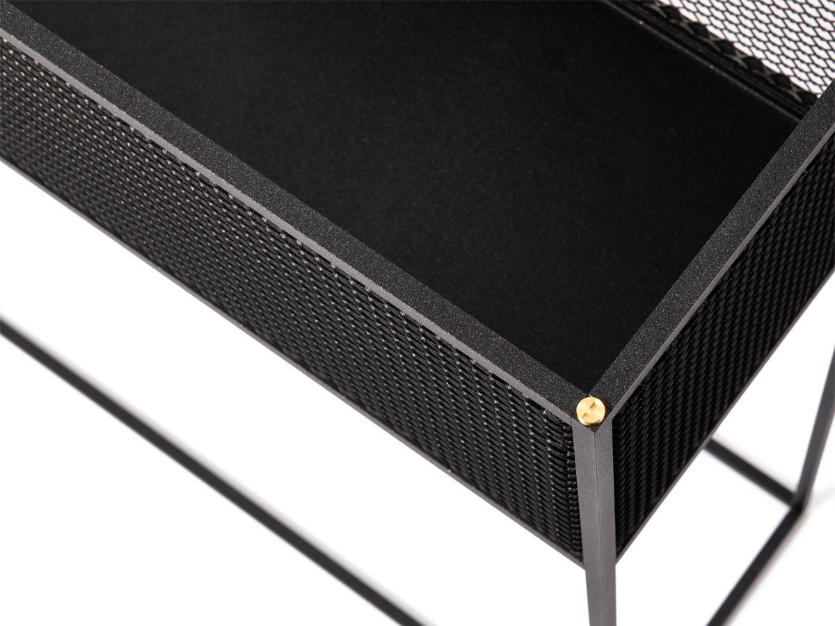 A striking design that exudes an elegant, industrial style, the contemporary planter has been innovatively crafted from matt black steel and perforated mesh finished with Buster and Punch signature solid metal coin screws in a choice of brass or steel. Designed to softly diffuse your walls and floors rather than hide them, the meshed design also allows for you to still see your collection of plant pots, books and other accessories placed inside. Part of the wider Meshed collection, the planter is perfect for positioning by a window in a living room or for welcoming you into the home when placed in a hallway.