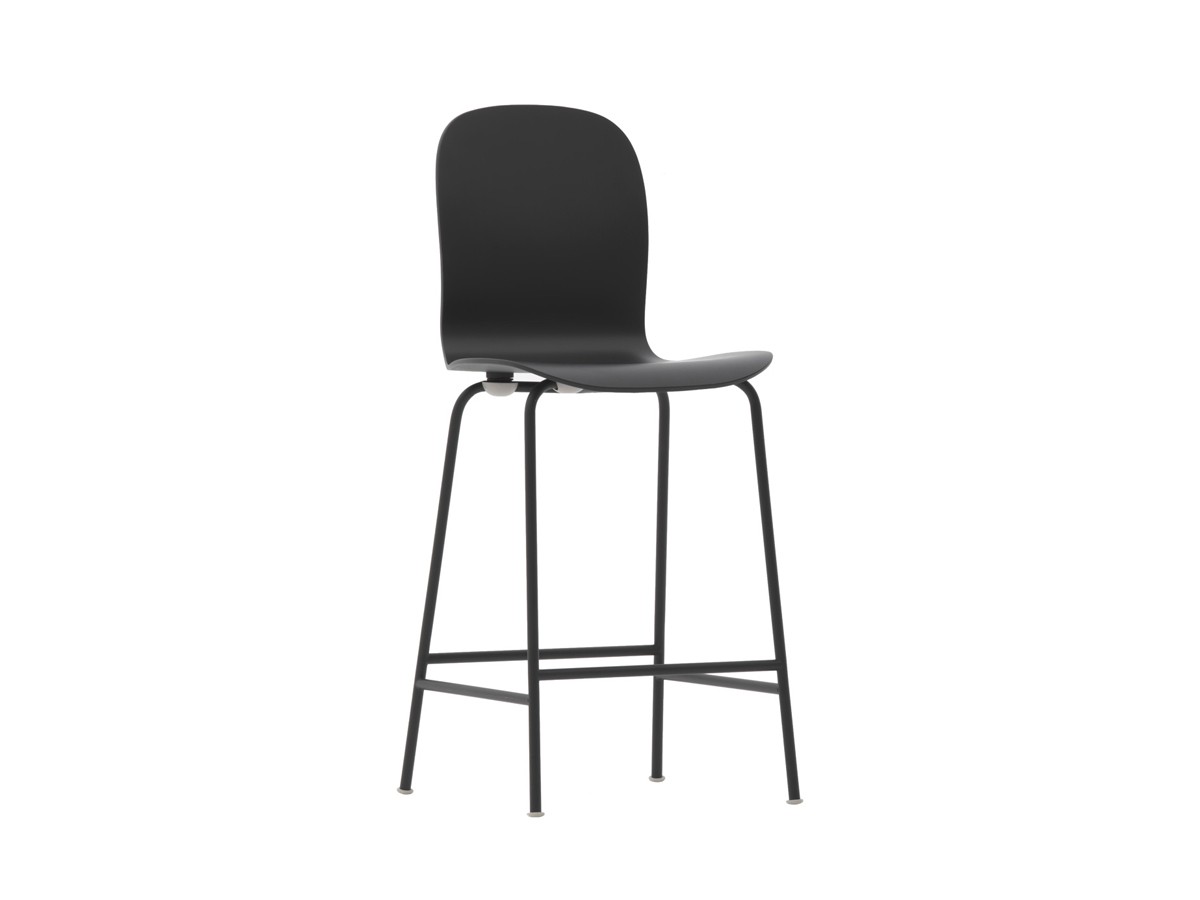 Stool with four legs and 8 colour finishes. Aniline colour for the body and matt satin lacquered base with epoxy paint in the same colour as the body.