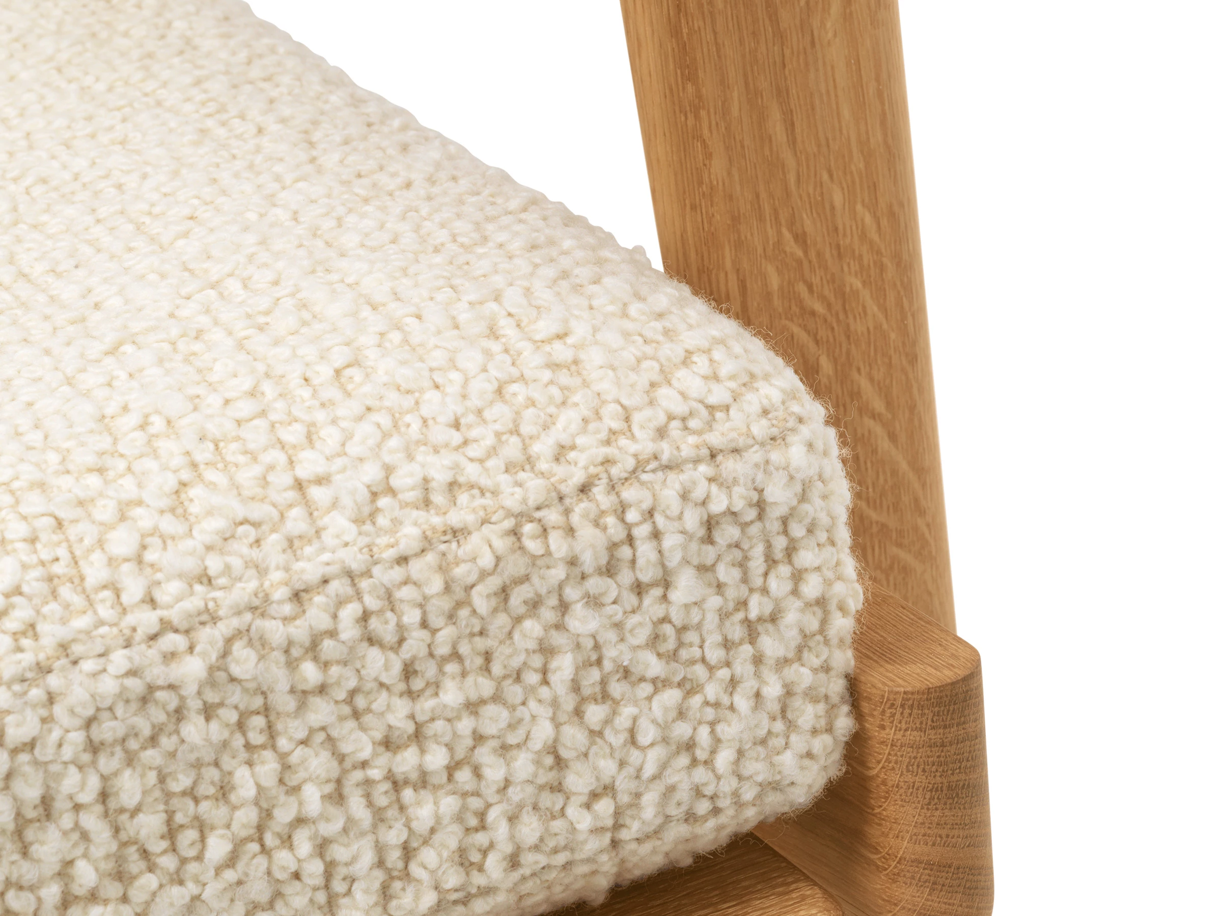 Softened with a deep, tactile, bouclé-upholstered seat and back, the lounge chair beckons you to settle in. Ideal for living rooms, reading corners or quiet lounges, it balances visual strength with laid-back comfort, bringing warmth, character and an effortlessly relaxed presence to any space.