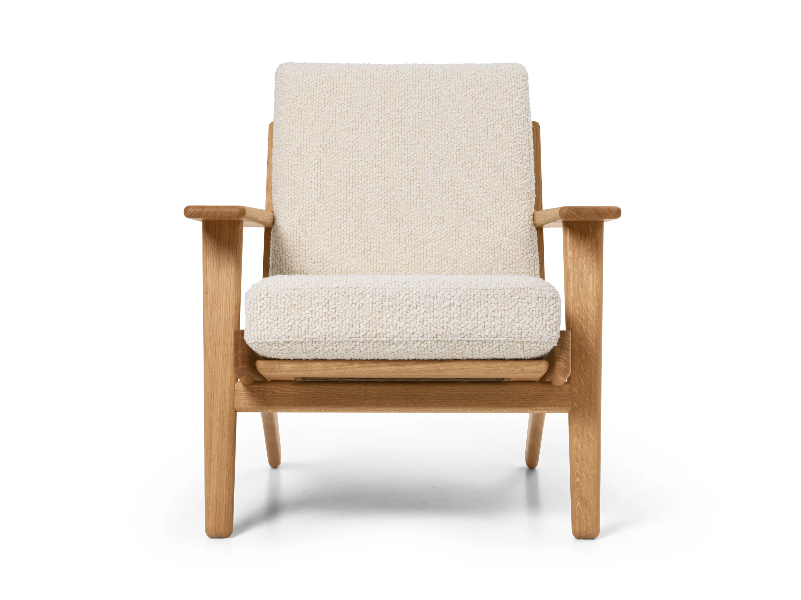 Designed by Hans J. Wegner in 1962, often hailed as the “master of the chair” for his devotion to perfecting form and comfort, the CH290 Lounge Chair is rooted in his enduring design vocabulary - defined by a rigid, solid wood frame. The FSC™-certified oak base reveals confident joinery, from sharply angled legs to broad armrests, while the slatted back introduces a rhythmic, architectural signature that’s unique to the CH290 series.