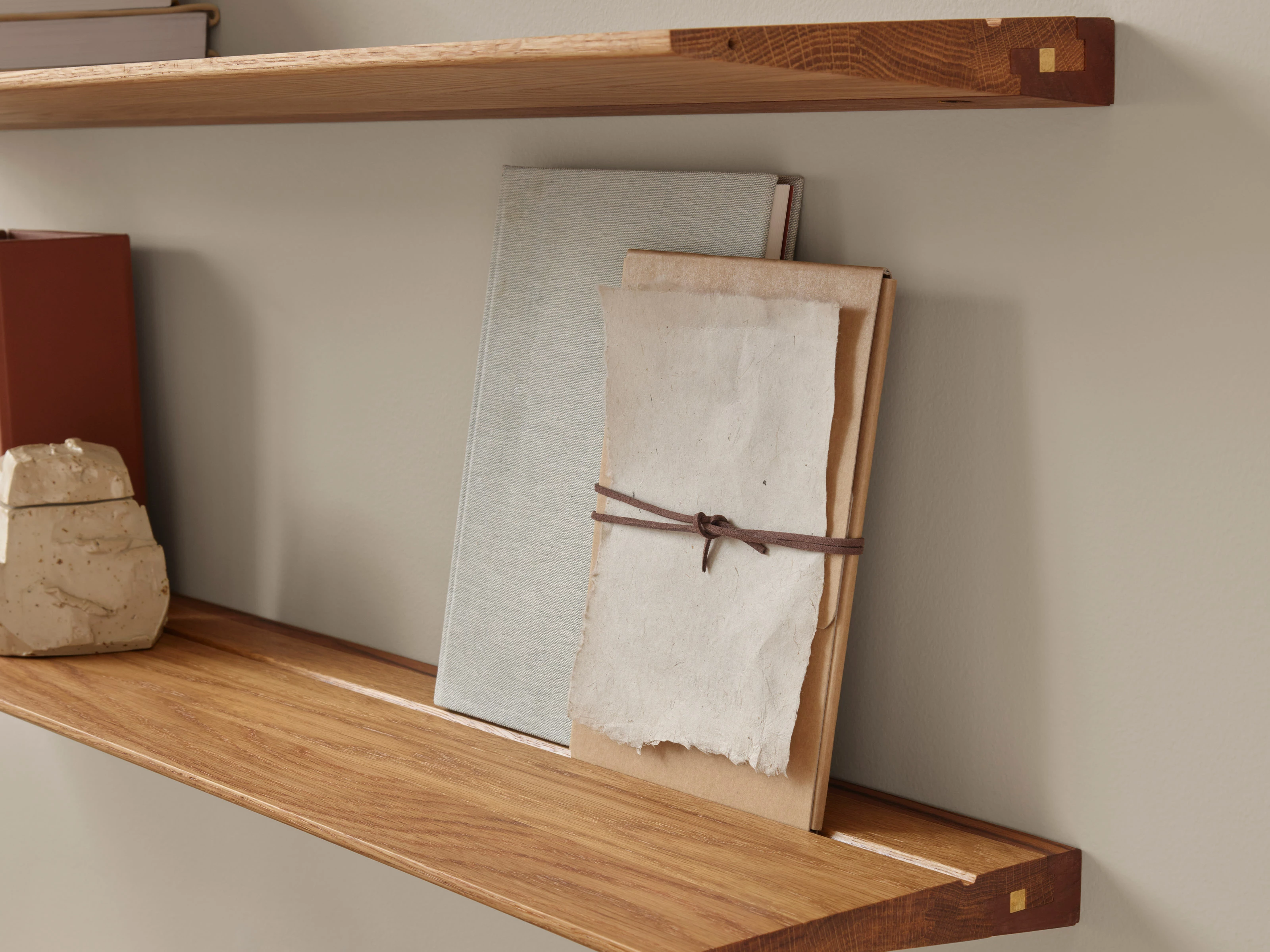 The Tsugi features a precisely milled groove, ensuring frames, books and other items stay neatly in place. Its simple, sleek design, free from visible fittings or brackets underneath, makes it ideal for minimalist interiors where an understated aesthetic lets spaces breathe, placing your carefully curated objects in the spotlight.