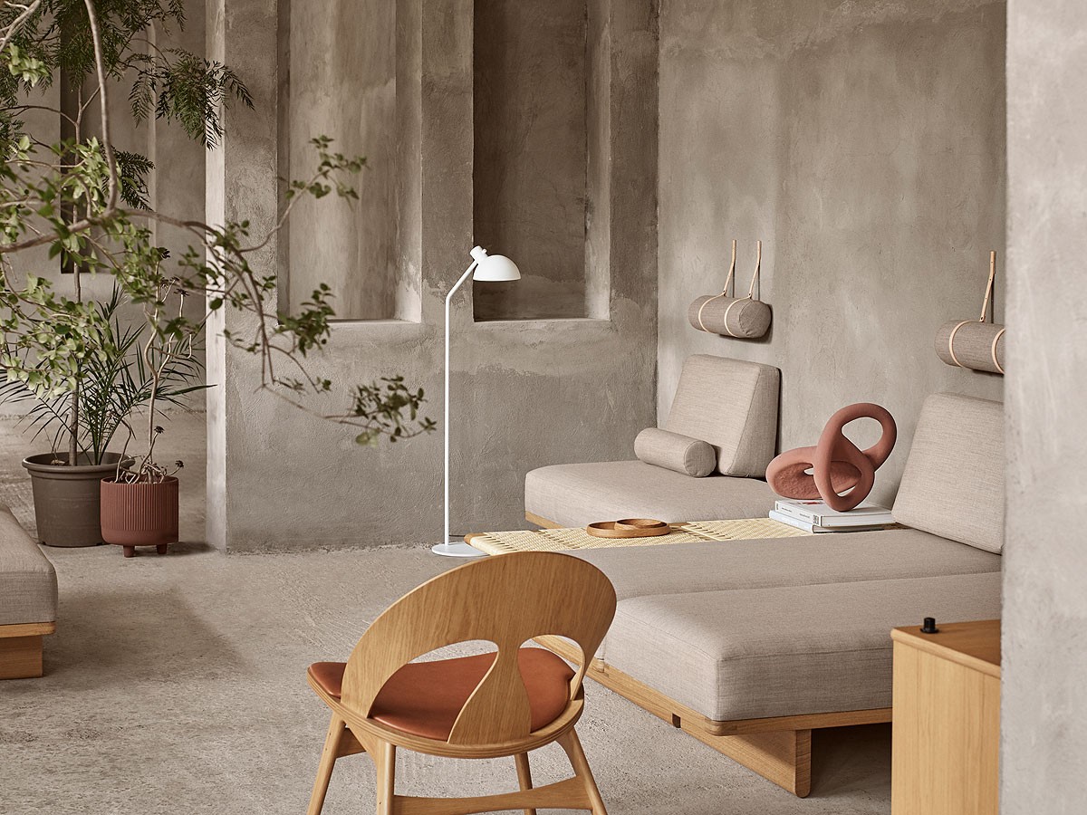 Perfect for fanning a dome of light over a lounge chair or sofa, the MO320 Floor Lamp adds a touch of warmth and comfort to a contemporary environment. Casting a direct beam of welcoming illumination the stylish floor lamp brightens with a sense of reassuring calm. A focus on shapes derived directly from nature, the floor lamp uses the commonplace cylinder and a hemisphere, reminiscent of the rising sun to form its pared-back appearance, an understated and ultra-modern lighting solution with an abundance of minimalist appeal. Shop the complete collection of Mads Odgard lighting here.
