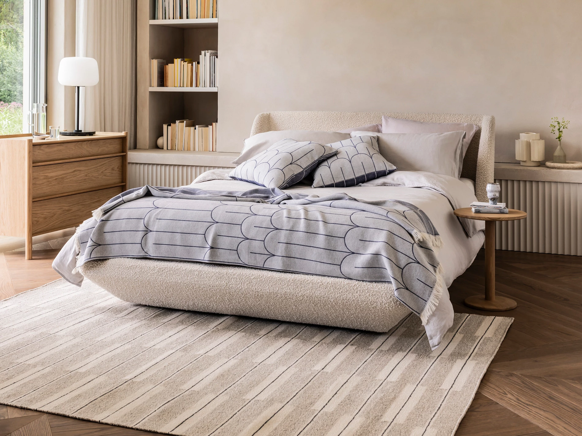 Drawn from the sweeping curves of Punta Galera, Ibiza, the Galera bed captures the effortless elegance of nature meeting design. Available in two sizes, the bed’s padded headboard flows around the mattress like a gentle cove, evoking calm and sanctuary.