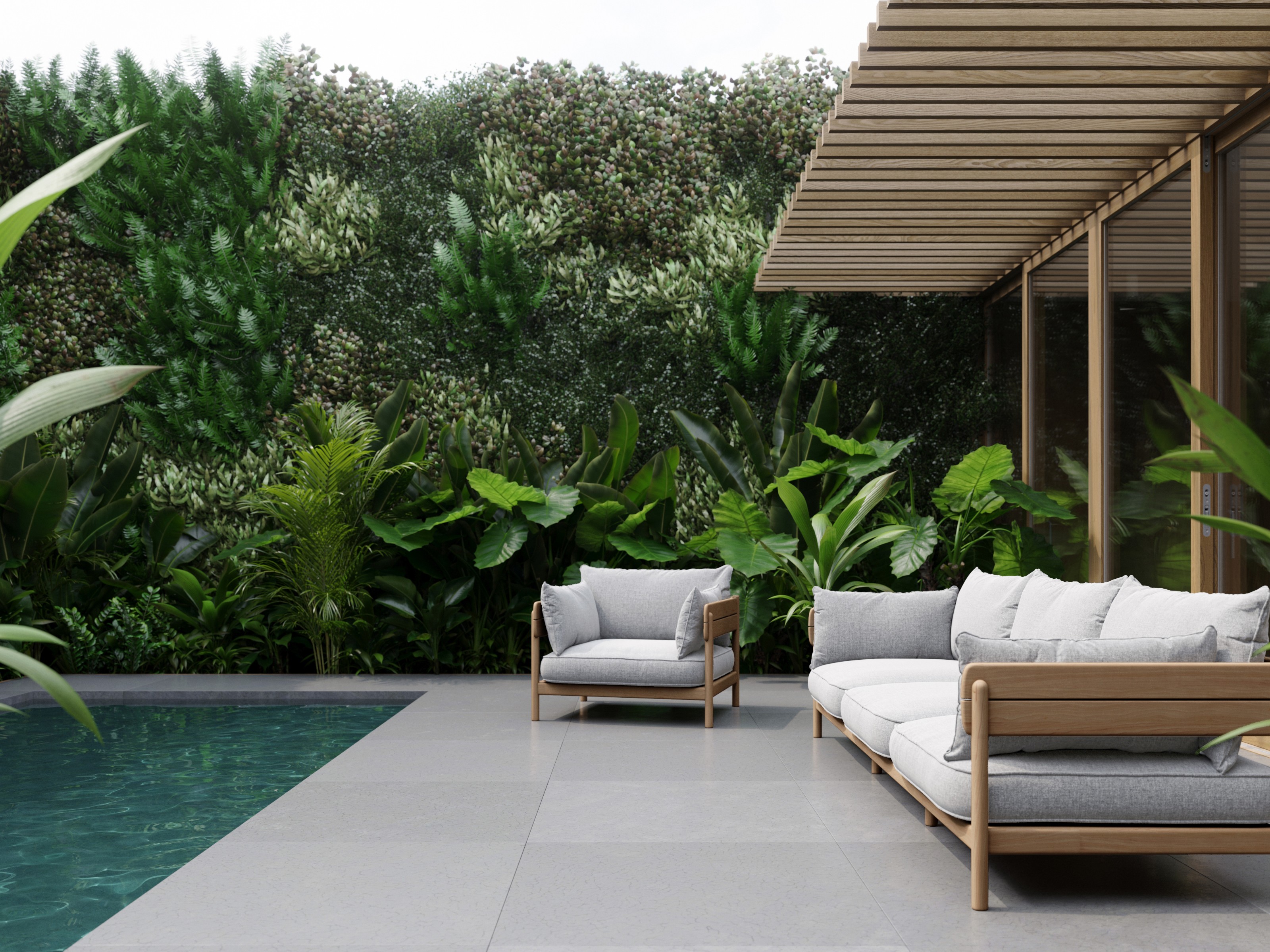The Tanso outdoor collection bridges the gap between outdoors and indoors by elevating the craftsmanship, quality and detail of outdoor furniture. Constructed from solid Teak, the Tanso Outdoor Sofa Armchair range is both robust and weather-resistant for outdoor use, yet it’s elegant and detailed aesthetic also affords it a place inside. Fitted with comfortable seat pads and cushions upholstered in grey outdoor fabric, which is breathable and easy to clean, the Tanso sofa range is perfect for relaxed alfresco lounging.