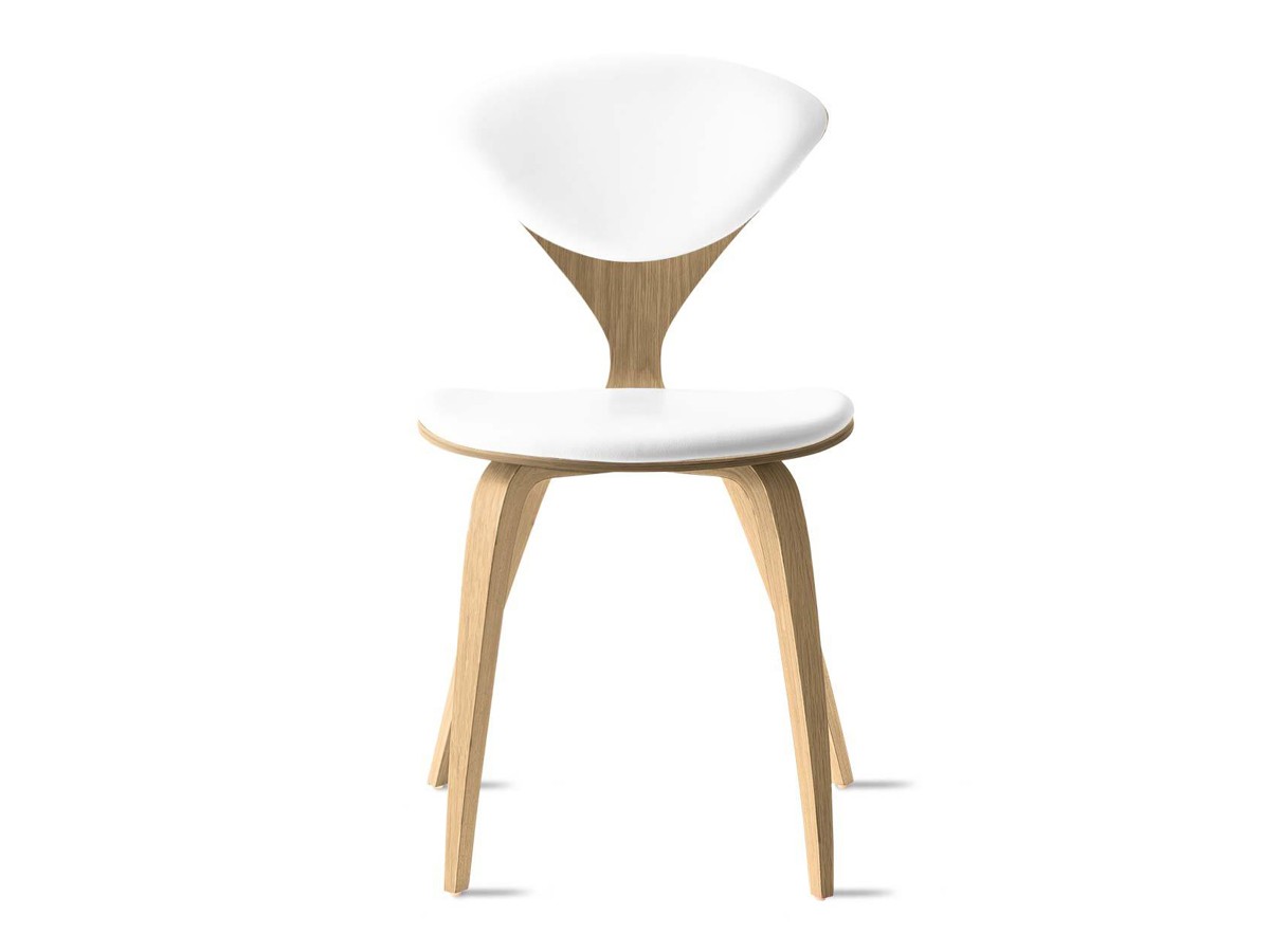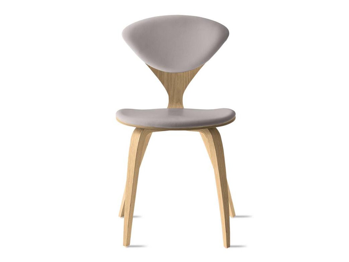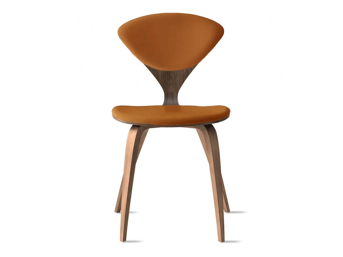 Boasting a perfectly curved frame with tapered legs, the Cherner Side Chair Fully Upholstered - Leather expertly embodies Norman Cherner's initial drawings. Originally designed in 1958, the simplistic yet sculptural piece applies plywood moulding technology to achieve the famous silhouette. Alongside the smooth oak veneer frame finish, luxurious leather upholstery showcases the iconic design while incorporating an extra level of comfort. The Camo Sierra Leather upholstery offers high durability, while its artful placement retains the stylish aesthetic and highlights the defining 'wasp waist' back of the chair.