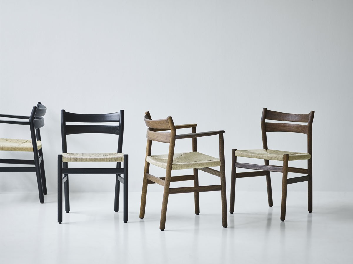 Taking influence from the traditional Shaker style; characterised by a focus on pure craftsmanship, high-quality materials and simple structures, the BM1 Dining Chair is defined by its elegant, solid wood design. Produced at the carpentry, Bernstorffsminde, one of the oldest carpentries in Denmark dated back to 1837, the chair embodies an utterly timeless design, perfect for a kitchen or dining space. Available in a range of solid wood finishes, with a tactile, hand-woven paper cord seat, the materials work together to create a sophisticated contrast that can fit seamlessly into interior styles both classic and contemporary. Also available with armrests.