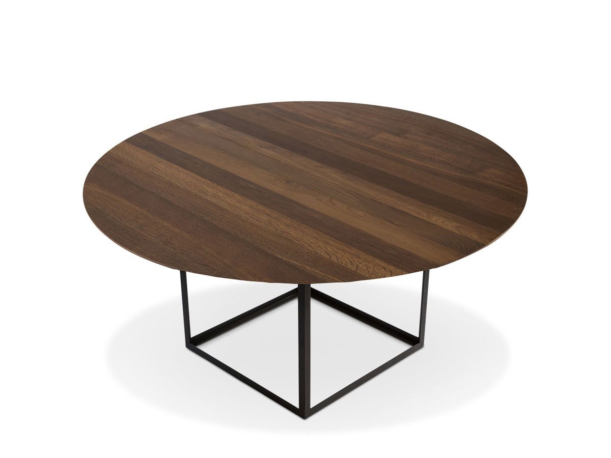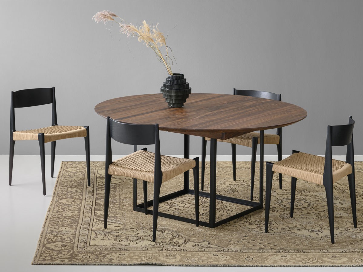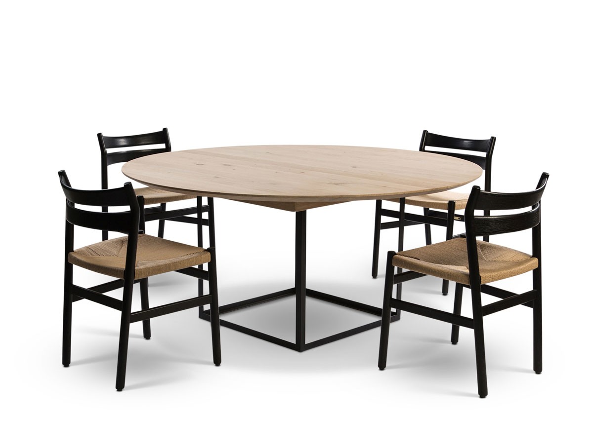 Juul's favourite form was the cube, which could be seen both in his private home and in a lot of his work. The Jewel dining table is defined by its striking cube base, available in black or bronze finishes. United with a smooth, rounded wooden tabletop in soaped or smoked oak, the contrast in shape, material and texture create an effortlessly stylish piece perfect for a contemporary dining room or kitchen space. The Jewel Table is also available with a stunning White Carrara Marble tabletop.