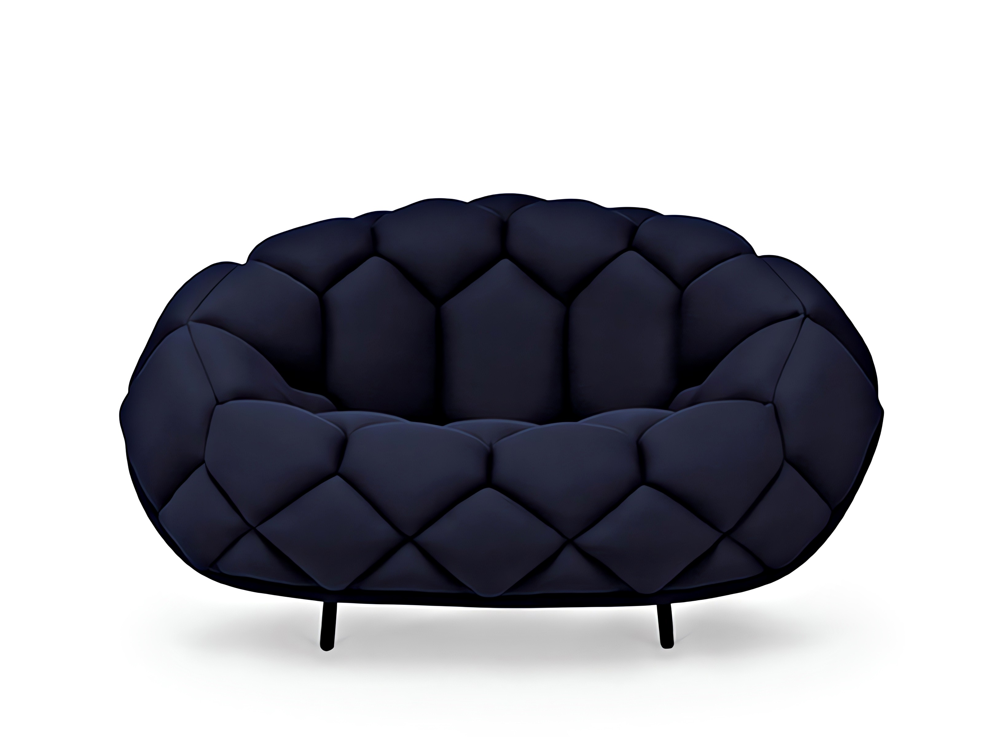 Crafted from a fibreglass shell and a slender metal frame, the quilted cover is made from individual fabric pockets, each inserted with foam and stitched together to create a distinctive, tailored piece that invites you to be seated into its soft embrace. A spacious design that is unique and full of character, the Quilt Armchair is perfect for creating a tranquil cosy retreat in a living room or bedroom within the modern home.