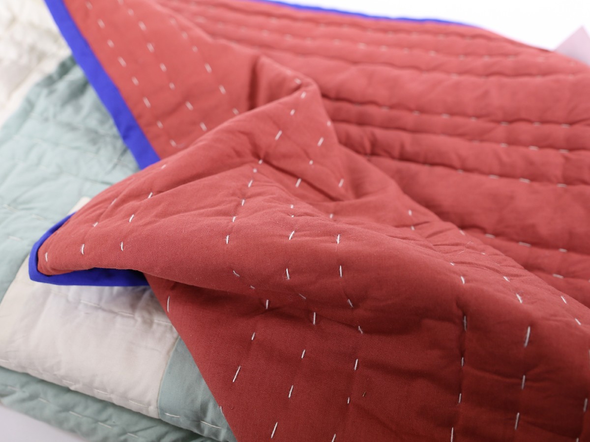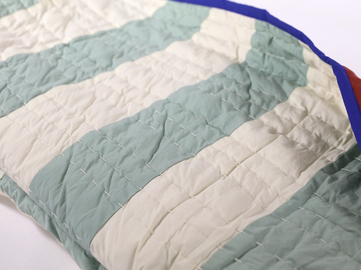 The series of bedspreads titled Braids are part of a larger collection designed by design duo All The Way to Paris for Hay. This handmade collection boasts simple, graphic patches and contemporary colours as reinterpretations of the unique craft skills of patchwork and quilting. The bedspreads are hand-quilted and hand-stitched in India.