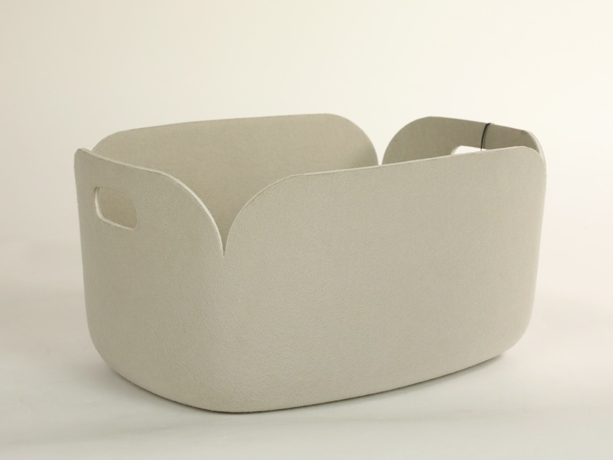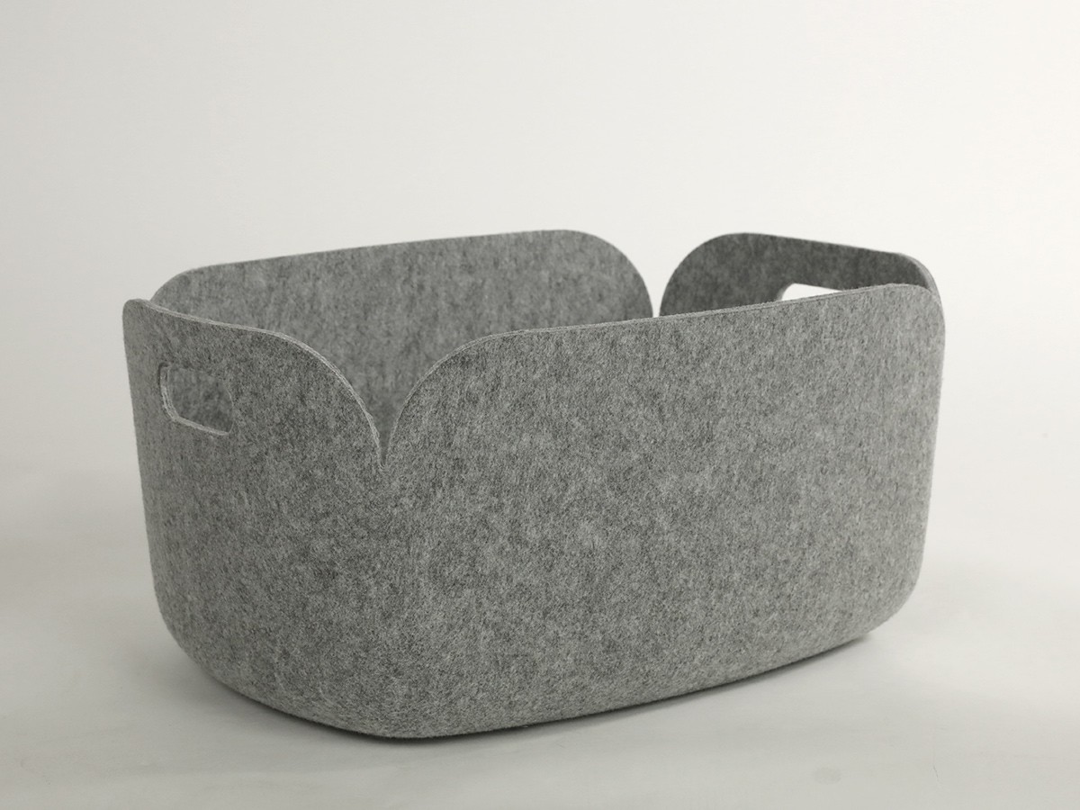 The name Restore refers to the fact that these storage baskets are made from recycled PET bottles. The Restore stroage basket is perfect for storing magazines or any other bits and pieces. Polymer felt gives the basket a friendly, textured appearance.