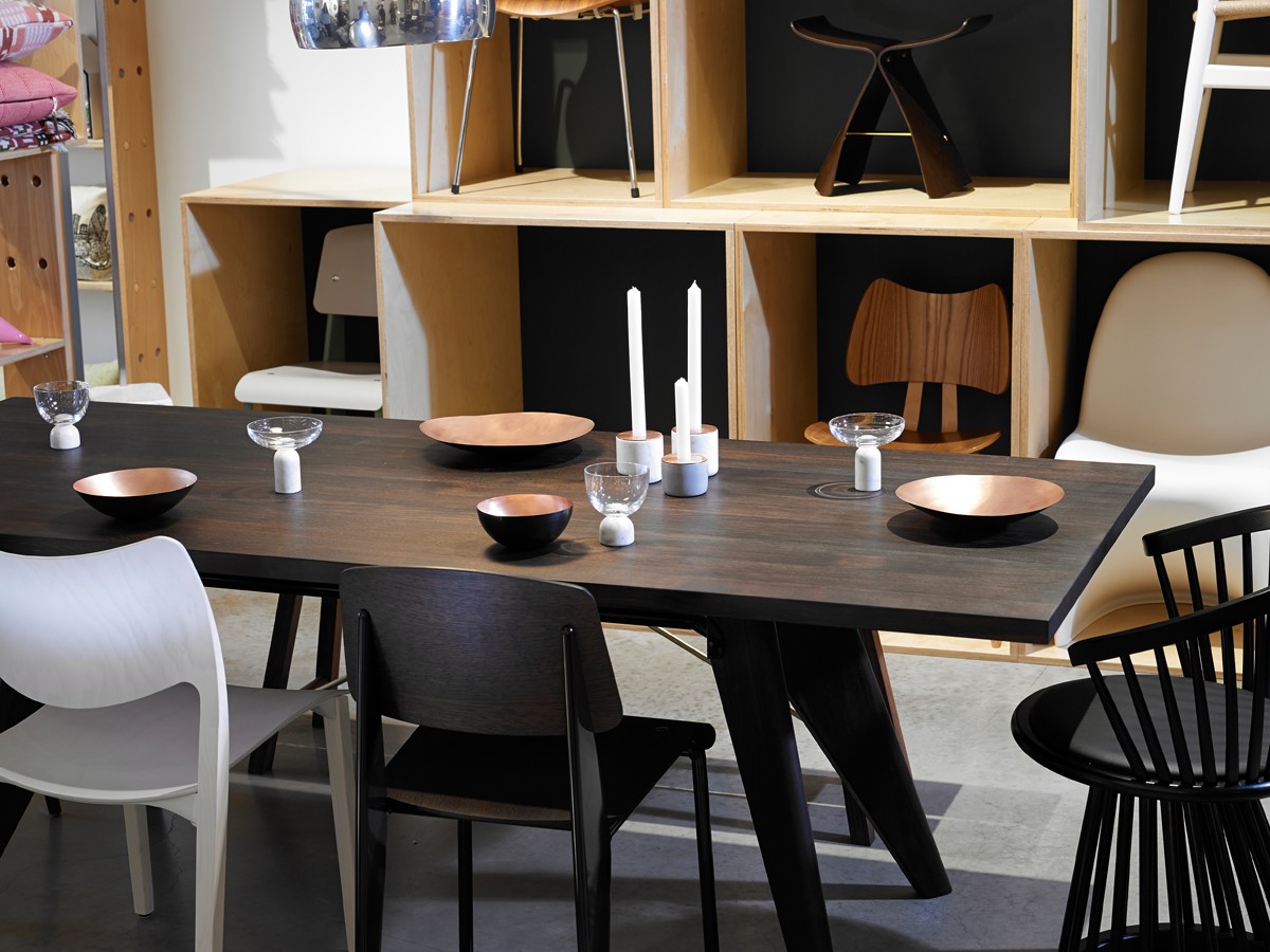 When the Table Solvay was created during World War II by Jean Prouvé, there was a metal shortage and so the table legs were made of wood. During the years of 1941 and 1942, Jean Prouvé's studio planned and realised various interior design products for the chemical company Solvay. Among his many designs of this time, there was also a wooden table that is a prime example of Prouvé's creations: the necessities of statics and the force path are clearly reflected in his design details. The solid oiled wood give Table Solvay a high-quality homely feel and compensate for its cool design.