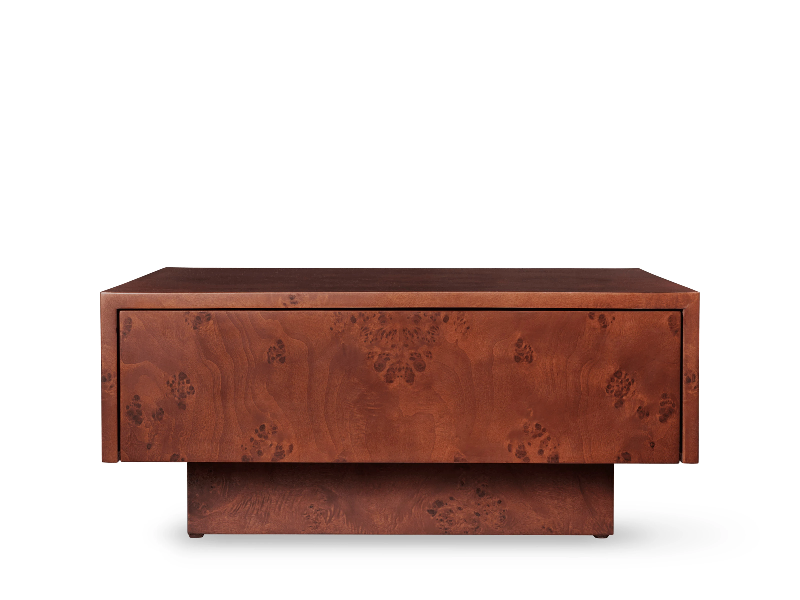 Compact yet striking, the coffee table’s low profile and discreet drawer make it a versatile addition to any living space. Its ample storage keeps your belongings organised, letting your rooms breathe - uncluttered and neatly composed. Available in a natural or dark-stained finish, the Burl lends a warm, tactile charm that effortlessly bridges rustic appeal with contemporary sophistication.