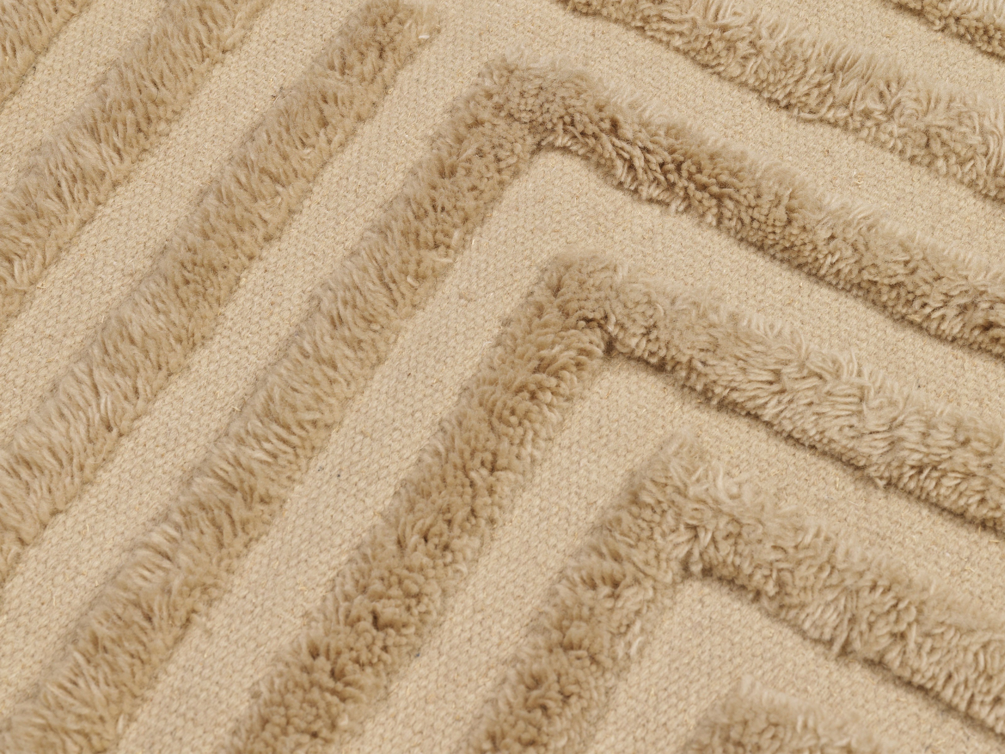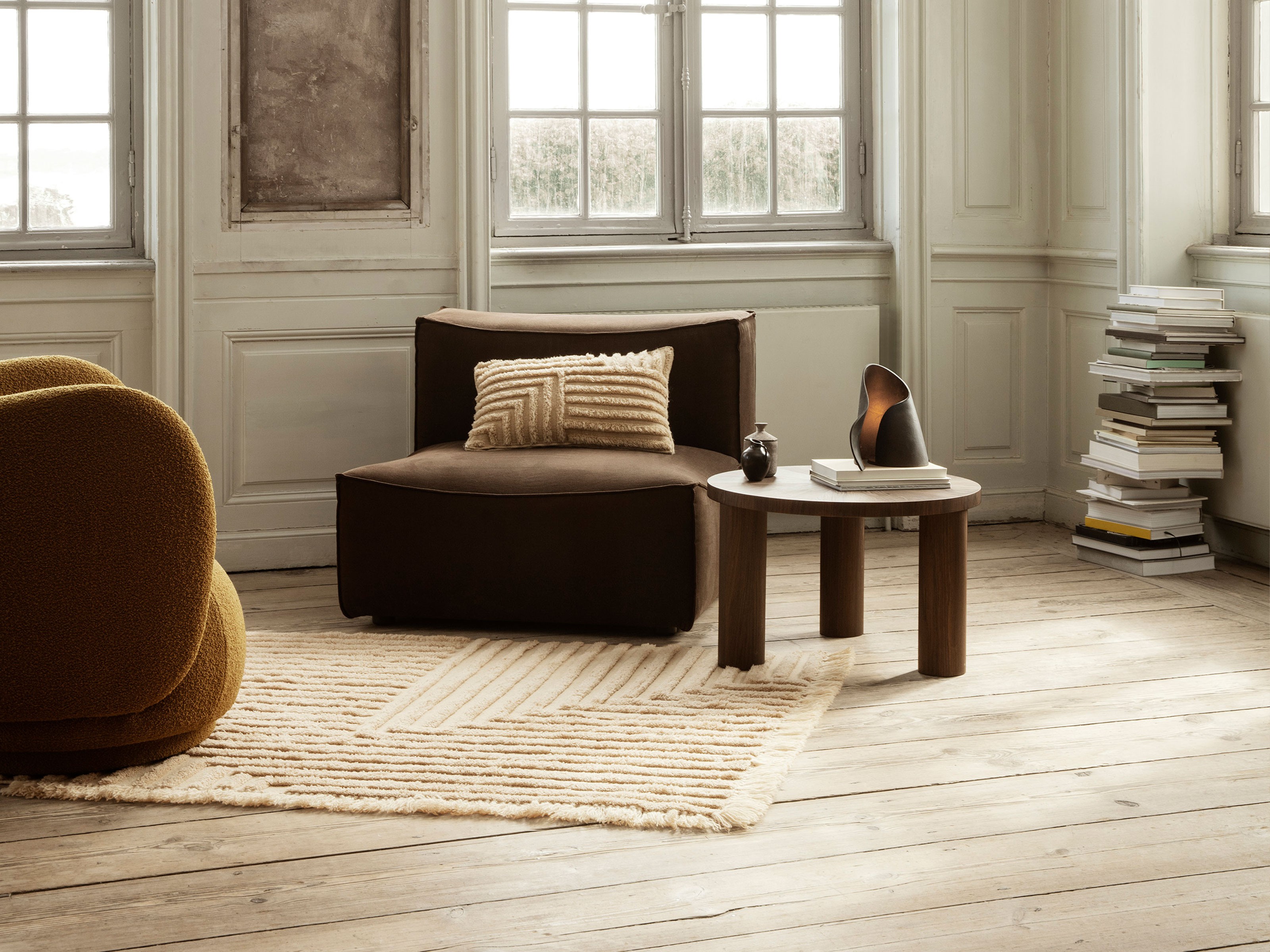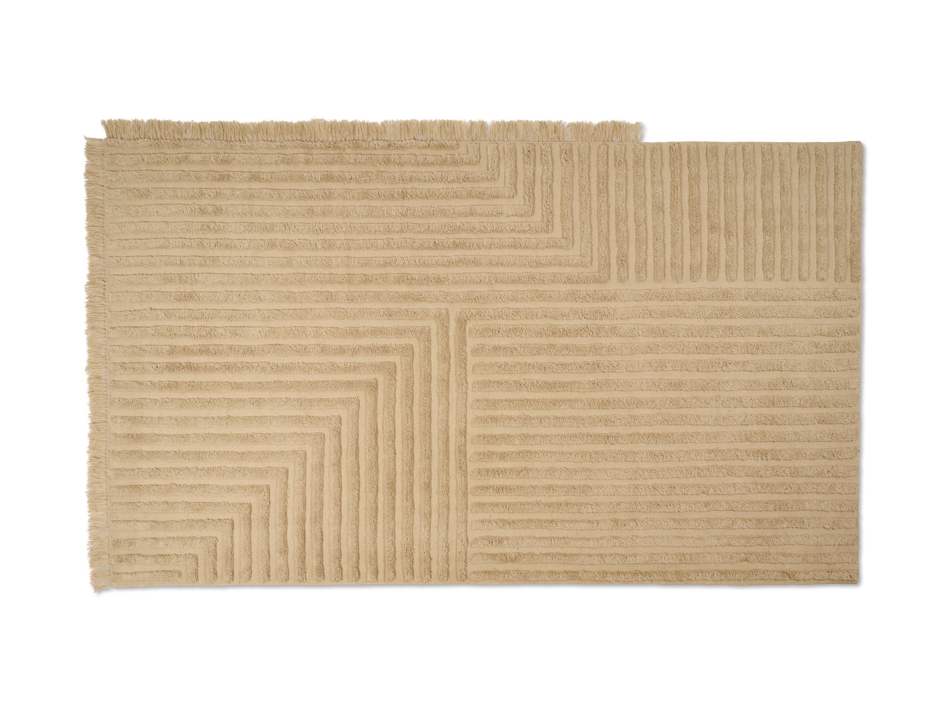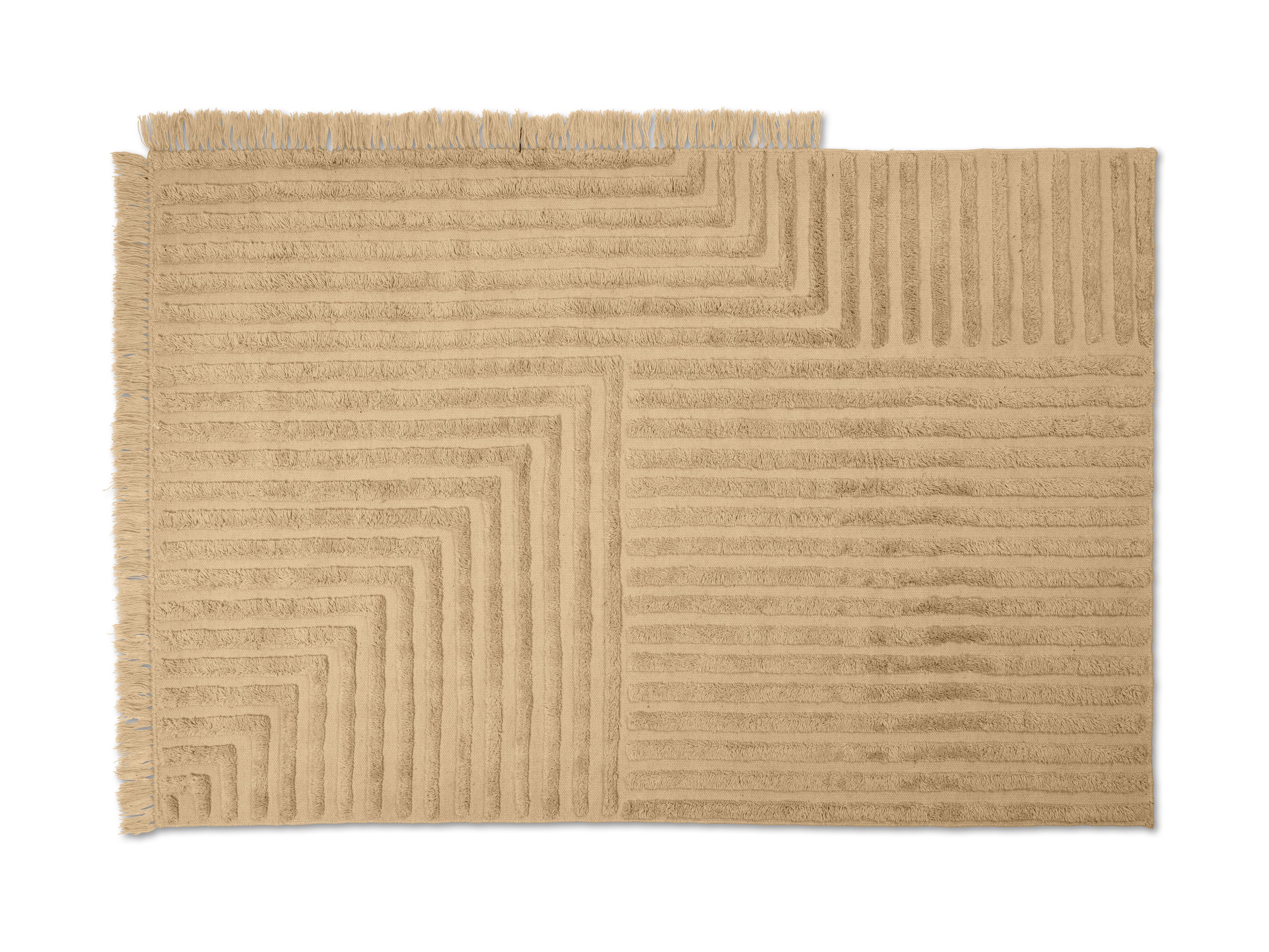 Boasting a striking yet effortless expression, the Ferm Living Crease Wool Rug is a statement piece that draws inspiration from the refined lines found in contemporary architecture. Handwoven from New Zealand wool, its rich expression is tufted in an intricate pattern of high pile and flat-woven wool and has asymmetric fringes along two sides.