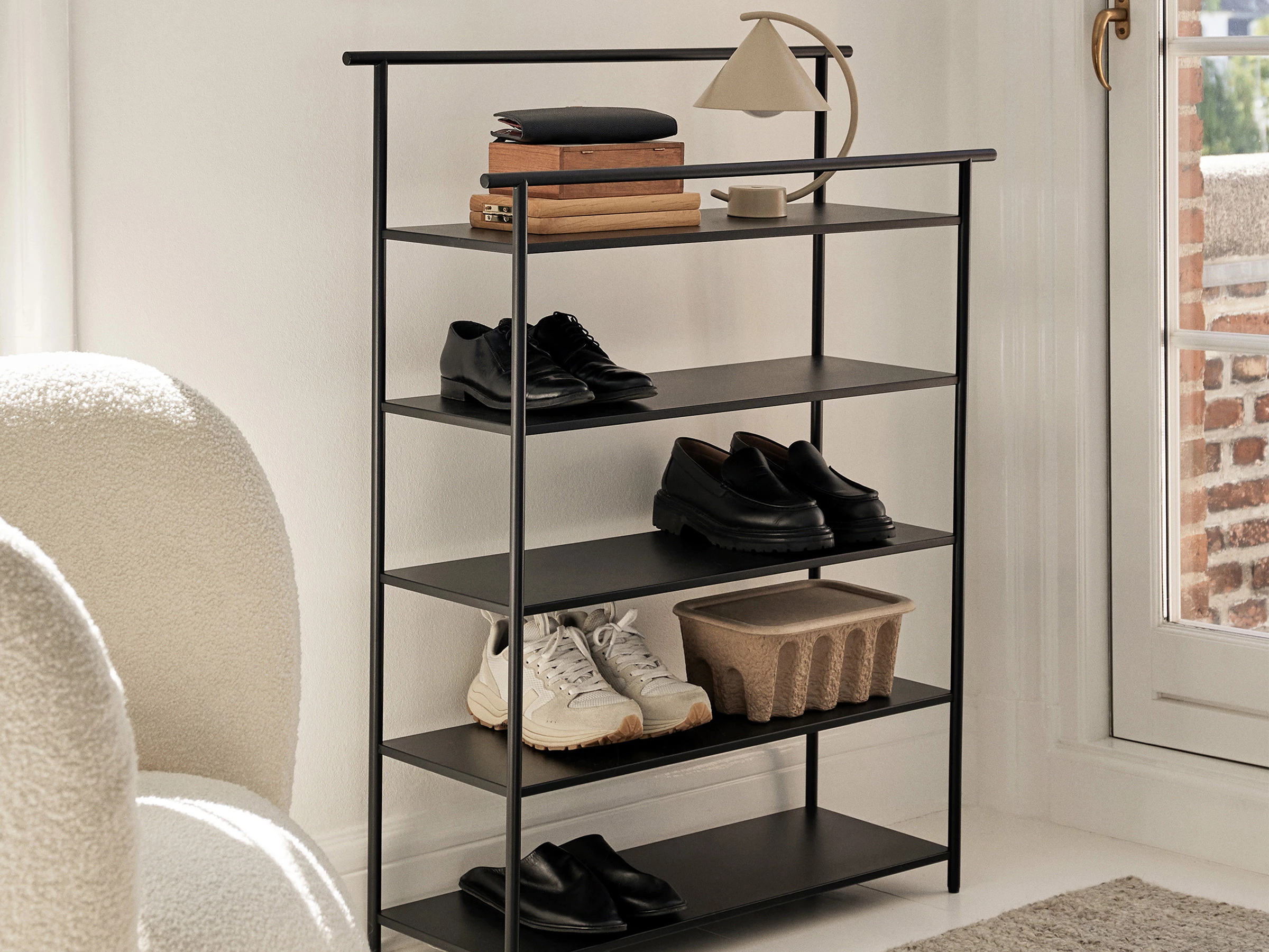 Bold, sturdy and versatile, the Dora Rack by Ferm Living would make an exceptional addition to your bedroom or hallway. Crafted entirely in powder-coated galvanised iron, this design offers a level of structure and stability that will last for years. Whether you consider yourself a refined collector or an aspiring indoor gardener, the Dora Rack will ensure that all of your most valued possessions will shine beautifully within your living space.