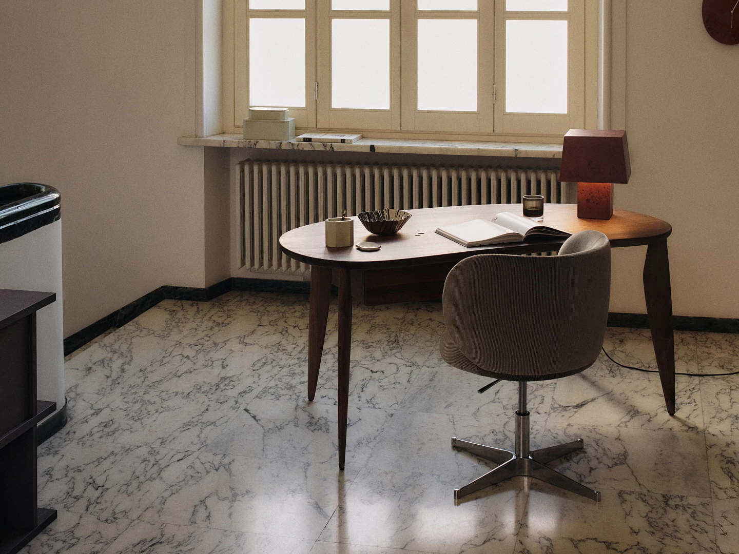 Made from FSC™-certified solid European walnut, the Feve Table offers a spacious tabletop for working on a laptop, reading or dining - even in the most compact of rooms. An optional drawer can be fitted to either side, providing handy storage for everyday essentials, paperwork or treasured items - keeping everything you need within reach, so work and leisure flow effortlessly.
