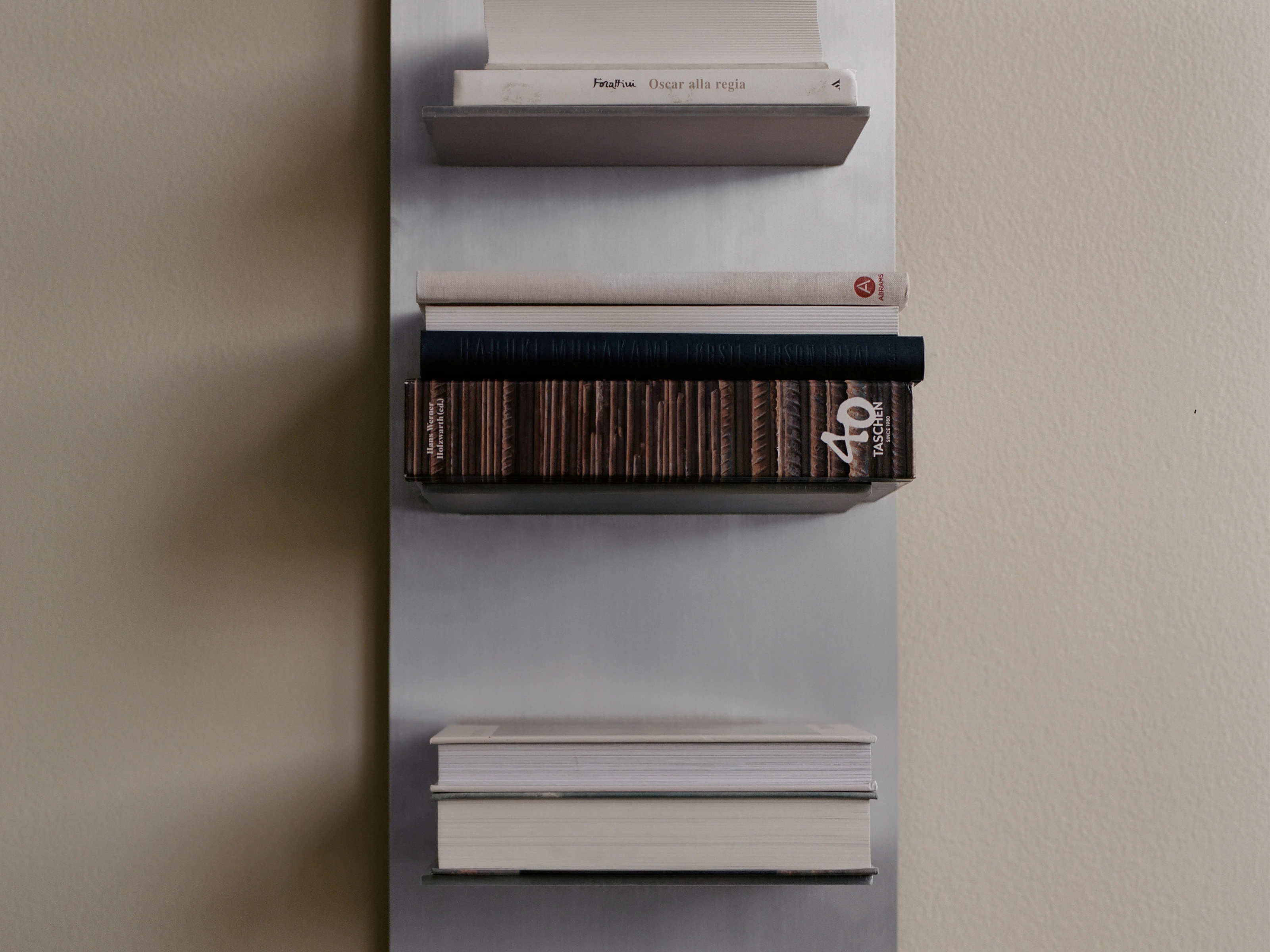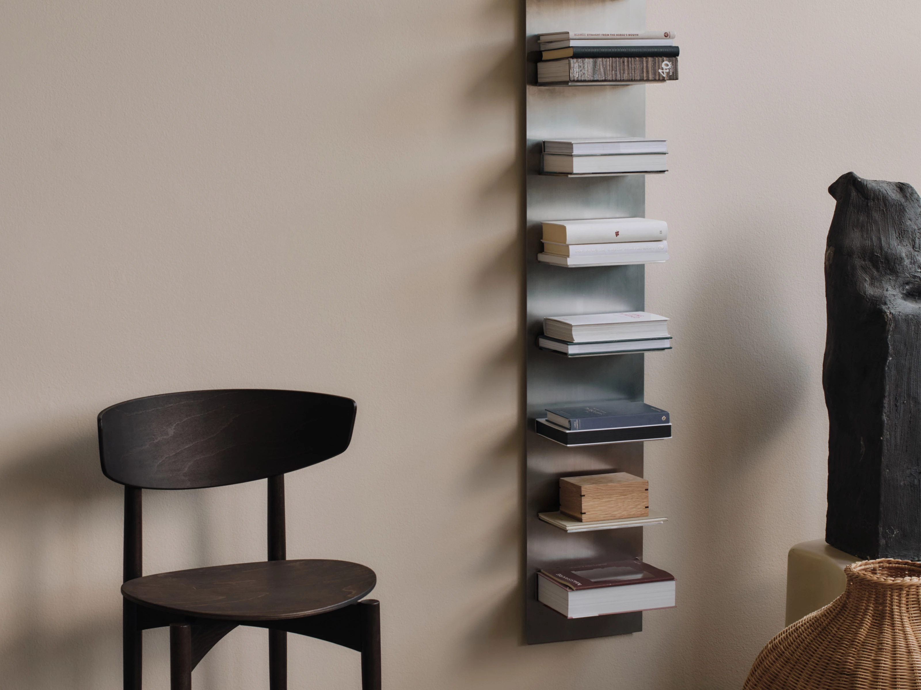 Ideal for displaying books or curated objects, the wall-mounted design introduces clarity and order to living spaces, hallways or work areas. Installed alone or aligned with other shelves, it creates a composed, architectural arrangement that feels purposeful and modern.