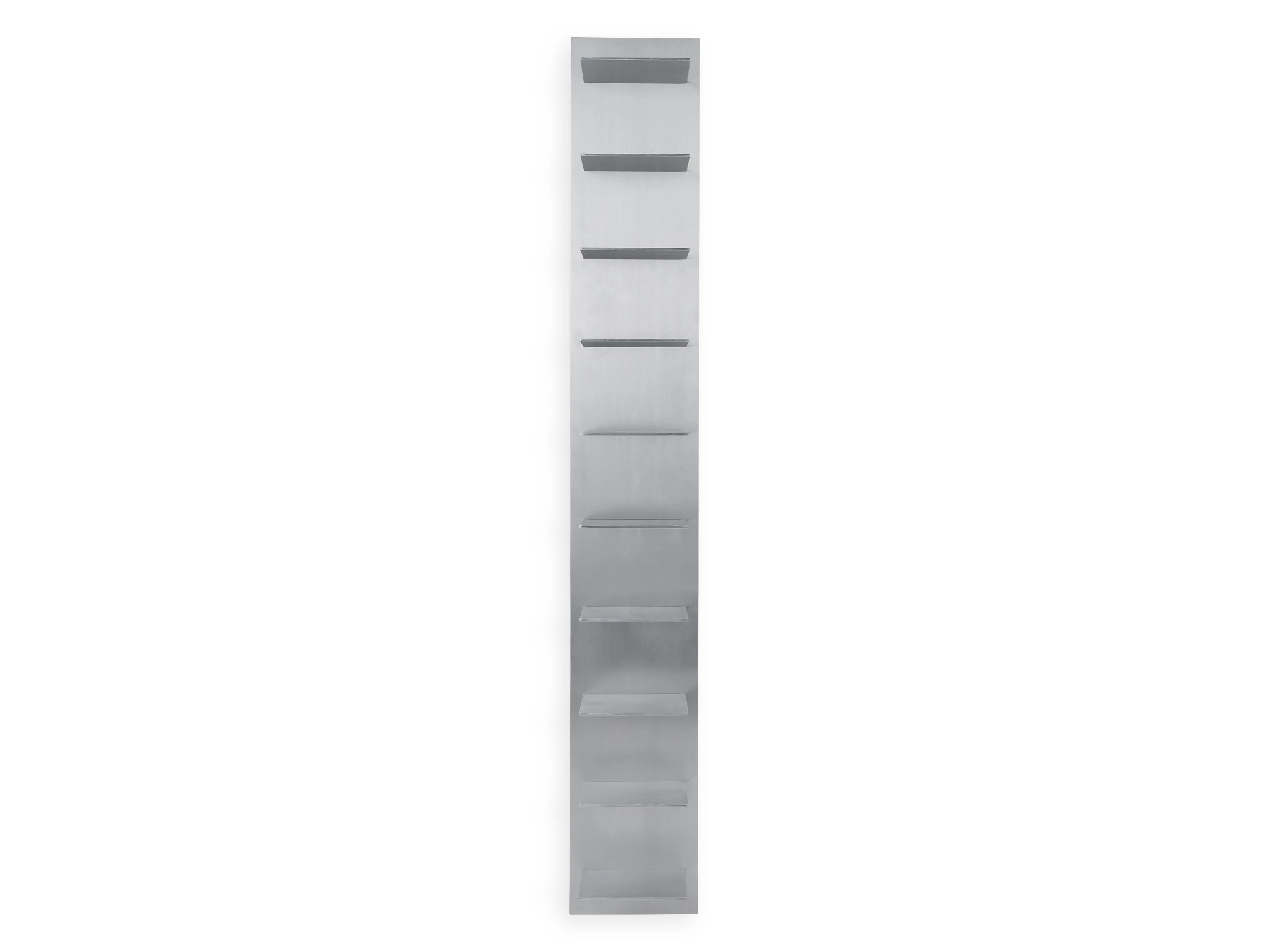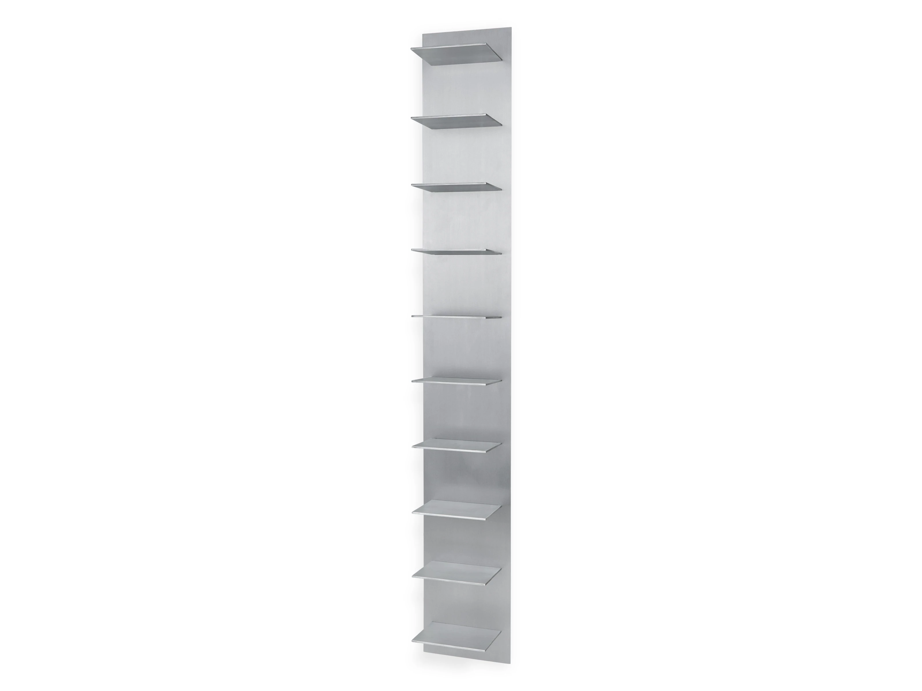 Inspired by the disciplined geometry of industrial architecture, this vertical Lager Wall Shelf turns raw material into a refined design statement. Brushed aluminium lends a sleek, contemporary style, while its towering form brings a sense of rhythm and structure to the wall, balancing strength with restraint.