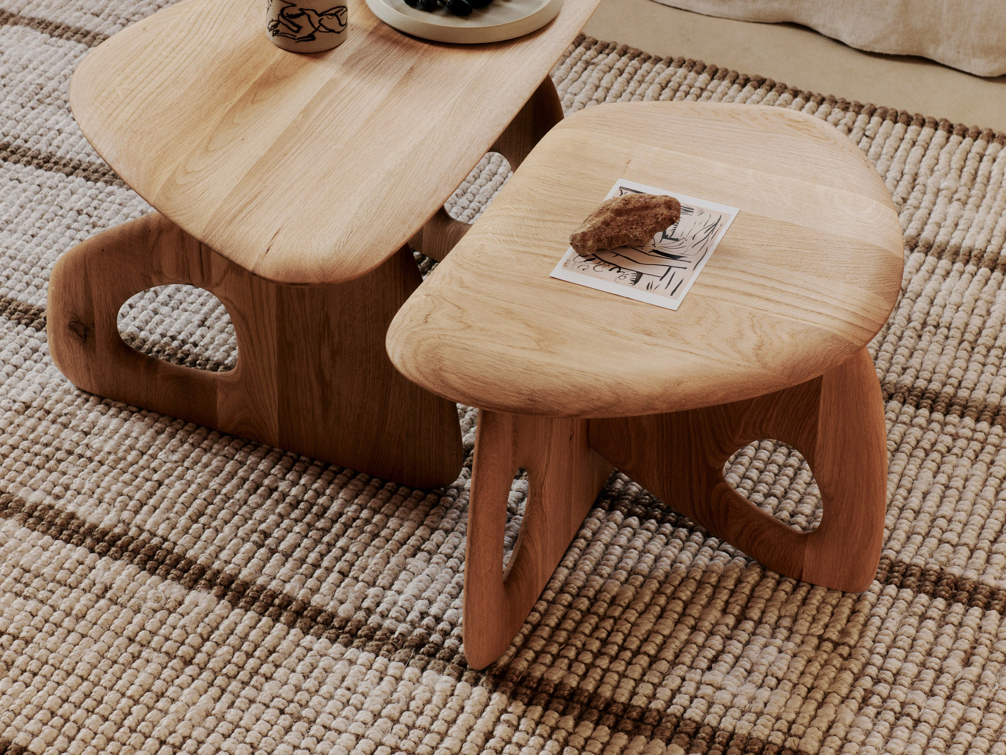 Conceived as a softer expression of sculptural form, the small Oar Coffee Table draws on fluid lines and natural materials to create a piece with quiet presence. Gently contoured edges, cut-out details and the warmth of FSC™ certified solid oak are elevated by brass feet accents, giving the design its distinctive character.
