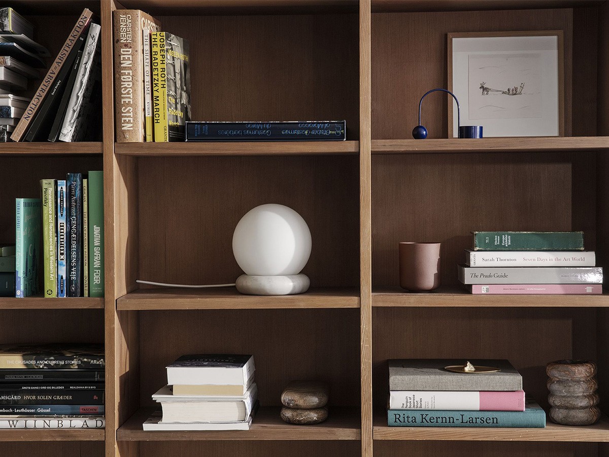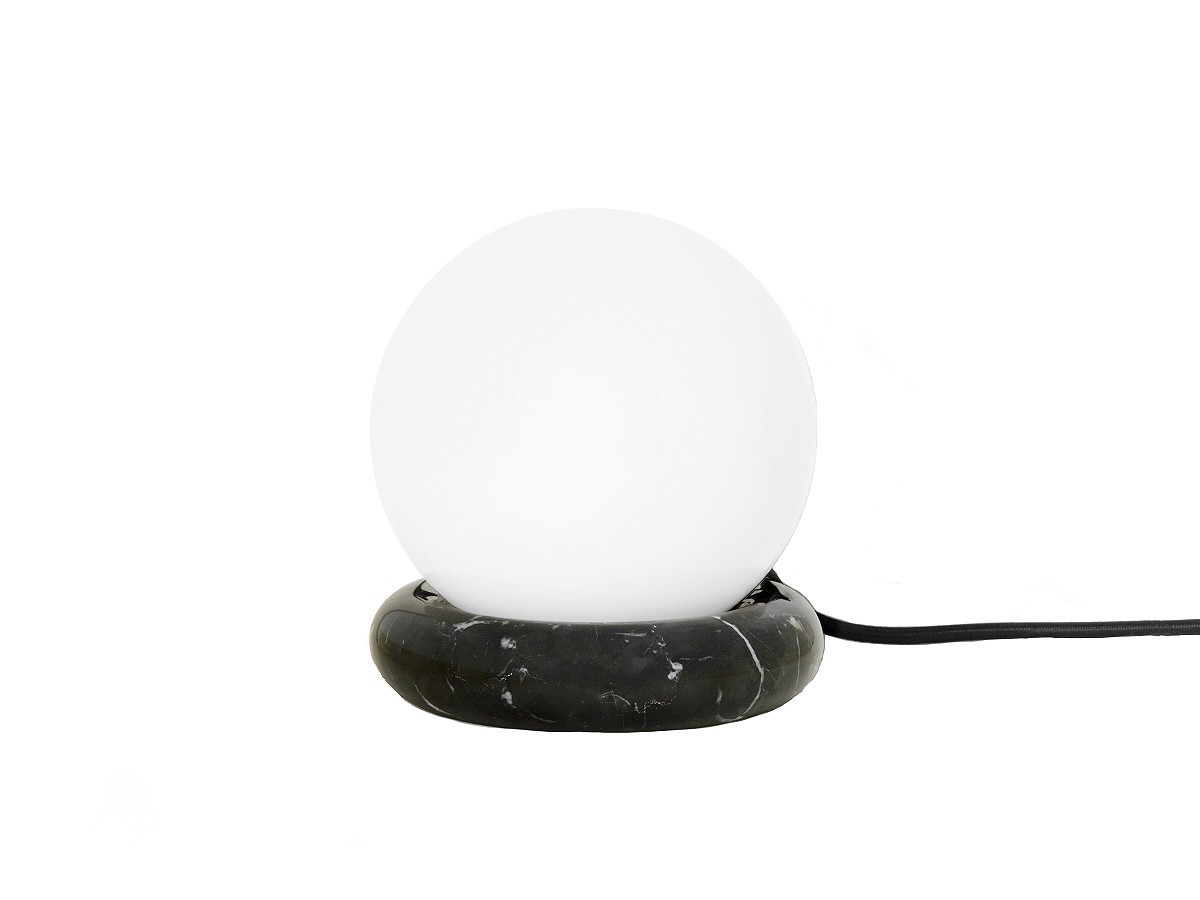Brightening any space with its soft glow, an impressive and distinguished opal glass sphere rests on a ring of natural, solid marble. A socket made of black, powder-coated steel adds a raw finishing touch, while a matching textile cable, with an integrated dimmer function, perfectly complements this distinctive and chic lamp from ferm LIVING.