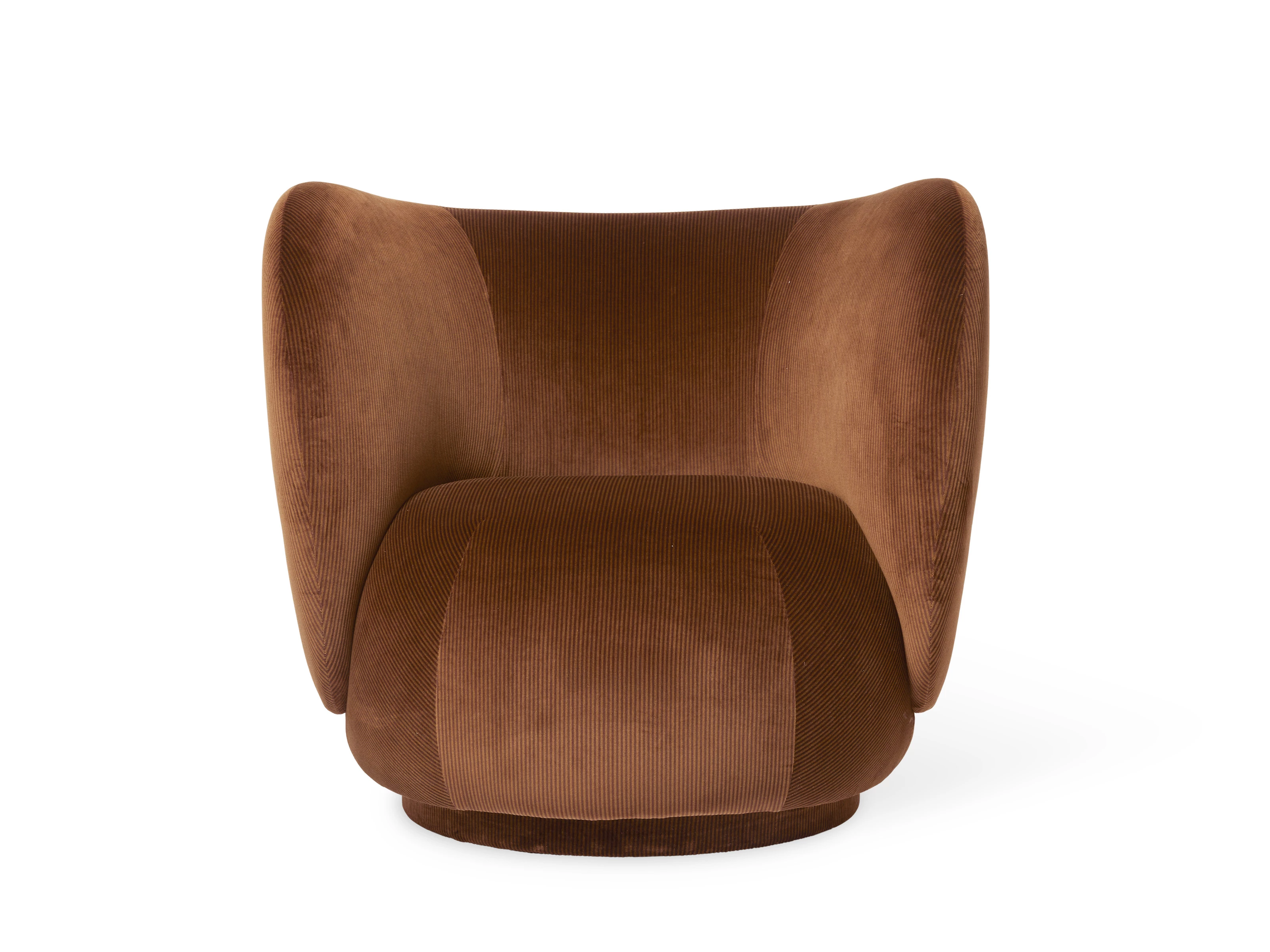 Crafted by hand in Europe, the Rico Lounge Chair in velvet explores surface and form through a richly tactile lens. Available in various colourways, Italian 100% cotton velvet with a two-tone devoré finish creates a fine corduroy effect that plays with light and shadow, enhancing the piece’s sculptural presence with quiet depth.
