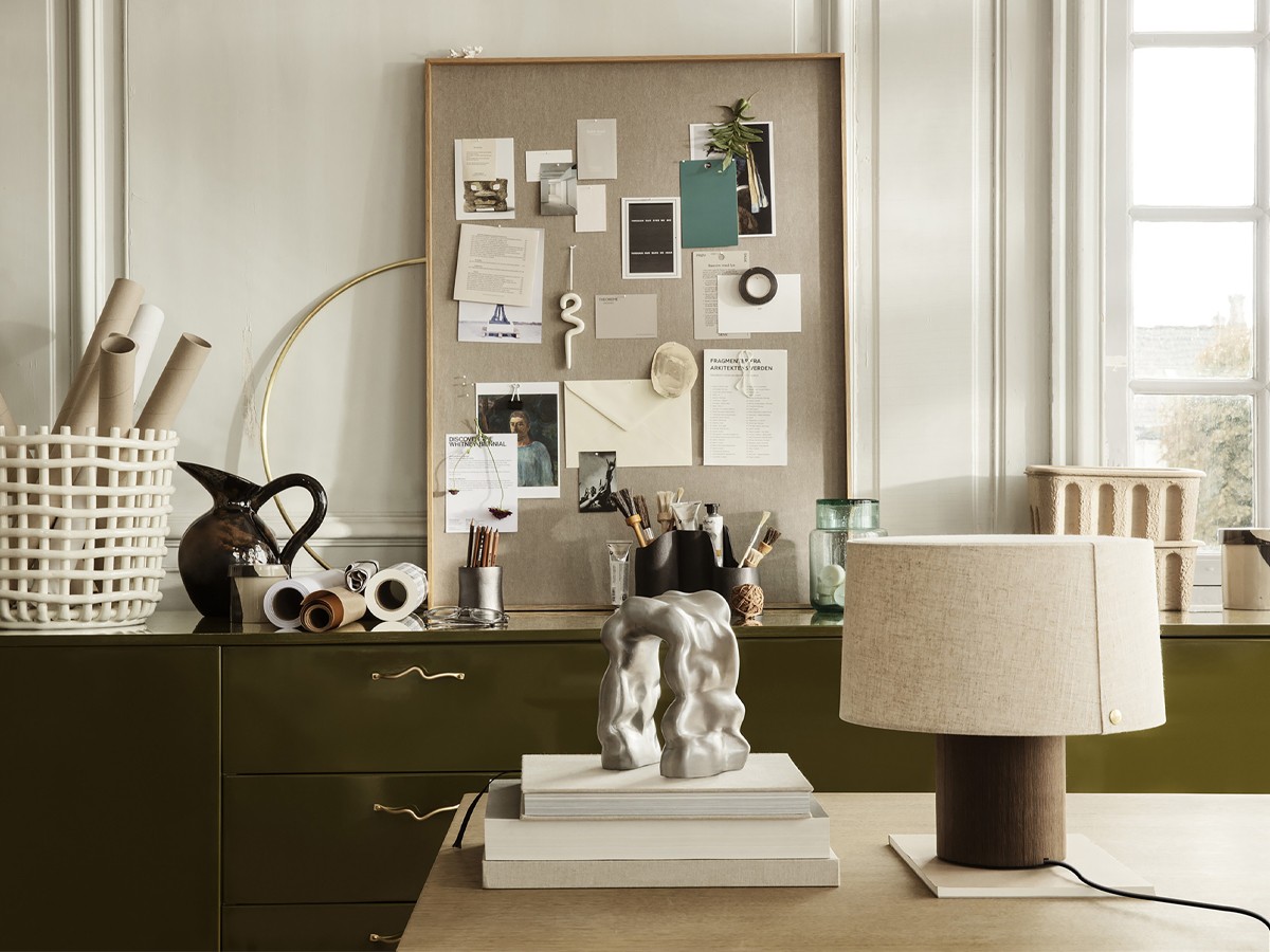 Perfect for organising your thoughts, documents and ideas, the ferm LIVING Scenery Pinboard is the ideal addition to a home office space. Contemporary and stylish, composed of black-stained ash or natural oak wood with beige fabric upon a cork base, its muted aesthetic embodies a raw and natural appearance.