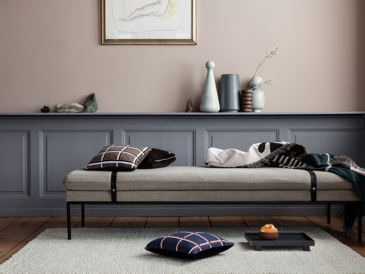 Danish furniture experts Ferm Living, in collaboration with design studio, Says Who, have crafted a beautiful and subtle piece in the Turn Daybed. Two belts in black leather, add a stylish and modern detail, further stating the high-quality feel of the piece, holding the cushion firmly in place. A blend of cotton and linen, in its natural, undyed tone, upholsters the daybed, keeping you cool and ensures lasting durability.