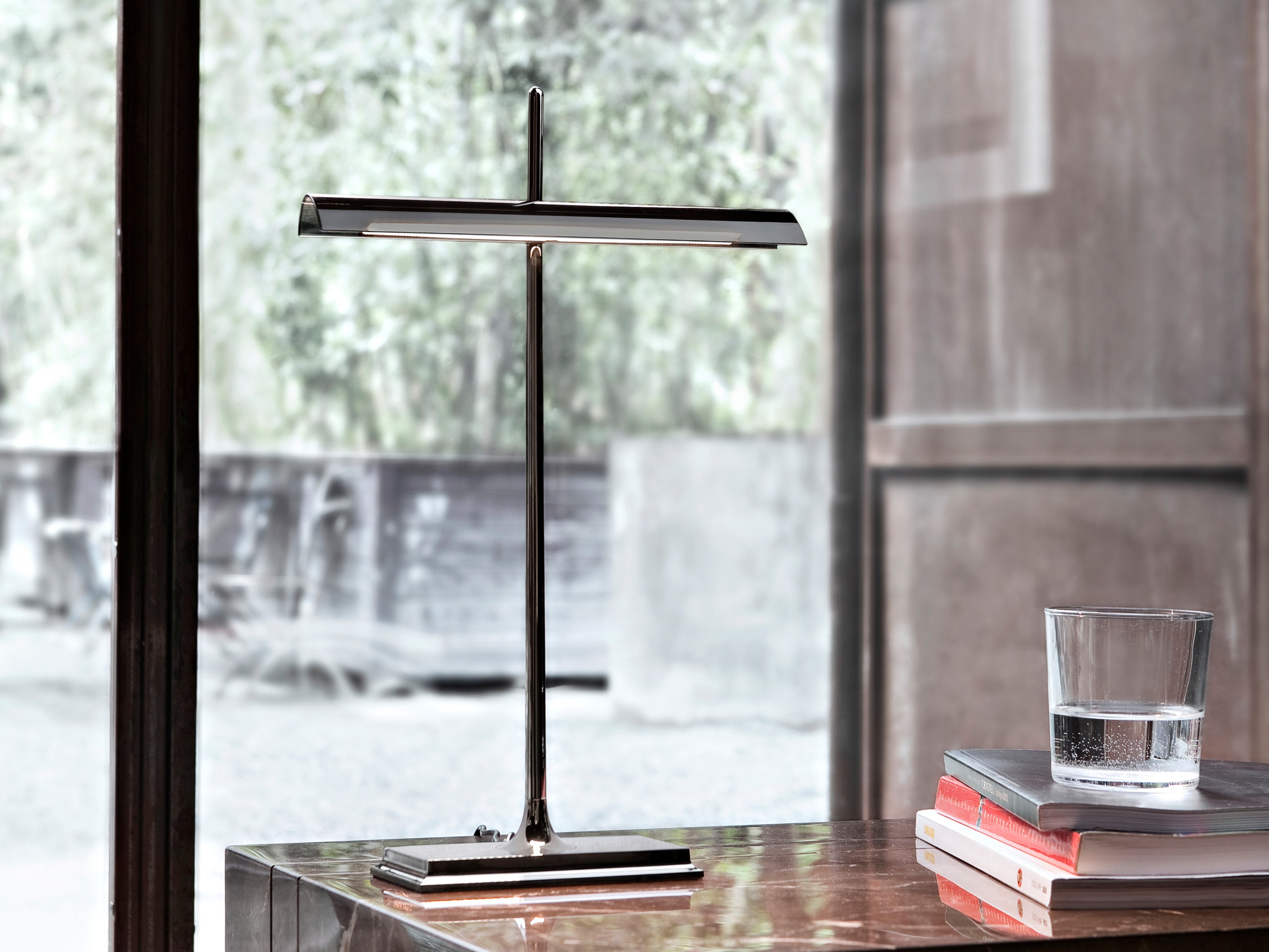 Released in 2013, over a century after the first banker’s lamps, the Flos Goldman Desk Lamp is a modern take on a classic design. Recreated in methacrylate and aluminium, with an integrated dimmer and USB charger, Ron Gilad has given the design a contemporary twist. The slender stem and unobtrusive base support a graceful diffuser, giving the lamp a sense of stylish elegance.