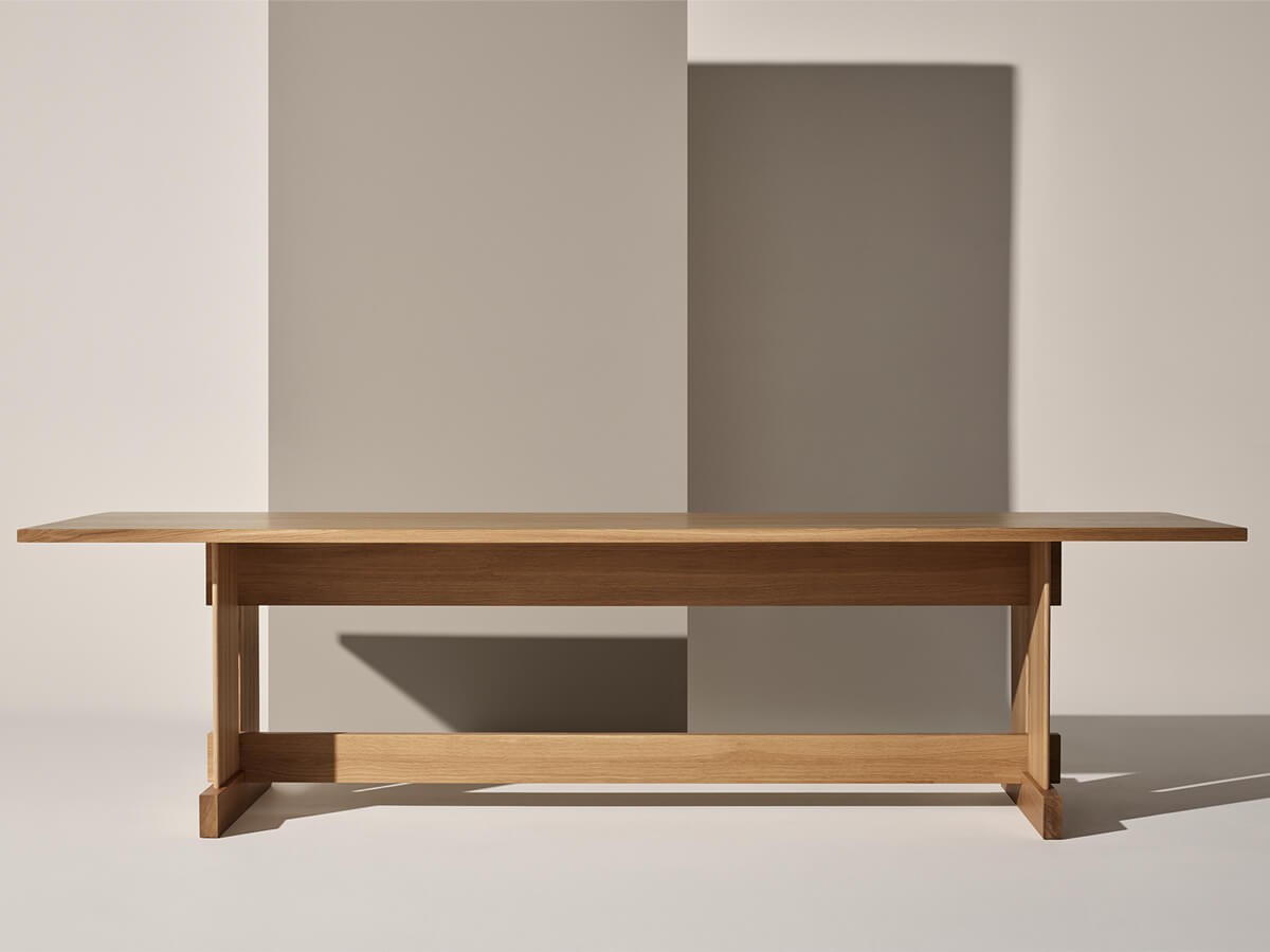 Featuring stunning lacquered Oak, the Grande Dining Table is an impressive dining solution, making the most of this natural material. The table exudes quality and solidity, with large joints and a thick tabletop that are able to stand the test of time, providing years of lasting use. The table can easily seat up to eight people, making it the ideal piece for dinner parties and celebrations, standing elegantly in large open spaces, creating a shared seating area with a unique contemporary finish.