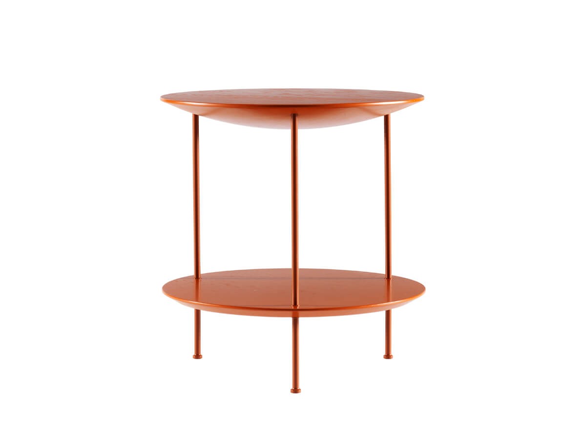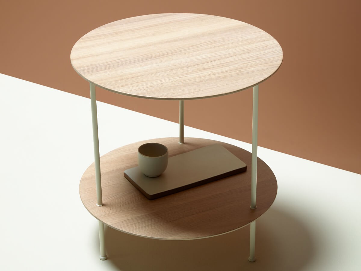 Reminiscent of two spinning saucers, the Pastille Side Table features two curved shelves perfectly brought together by the use of three slender metal legs. The table is the ideal accompaniment to a sofa or armchair, allowing you to put down a drink or book, or even place a table light upon. Four distinct colourways are available, allowing you to choose the ideal version for your home, all using earnest Oak wood harvested from local, sustainably managed forests.